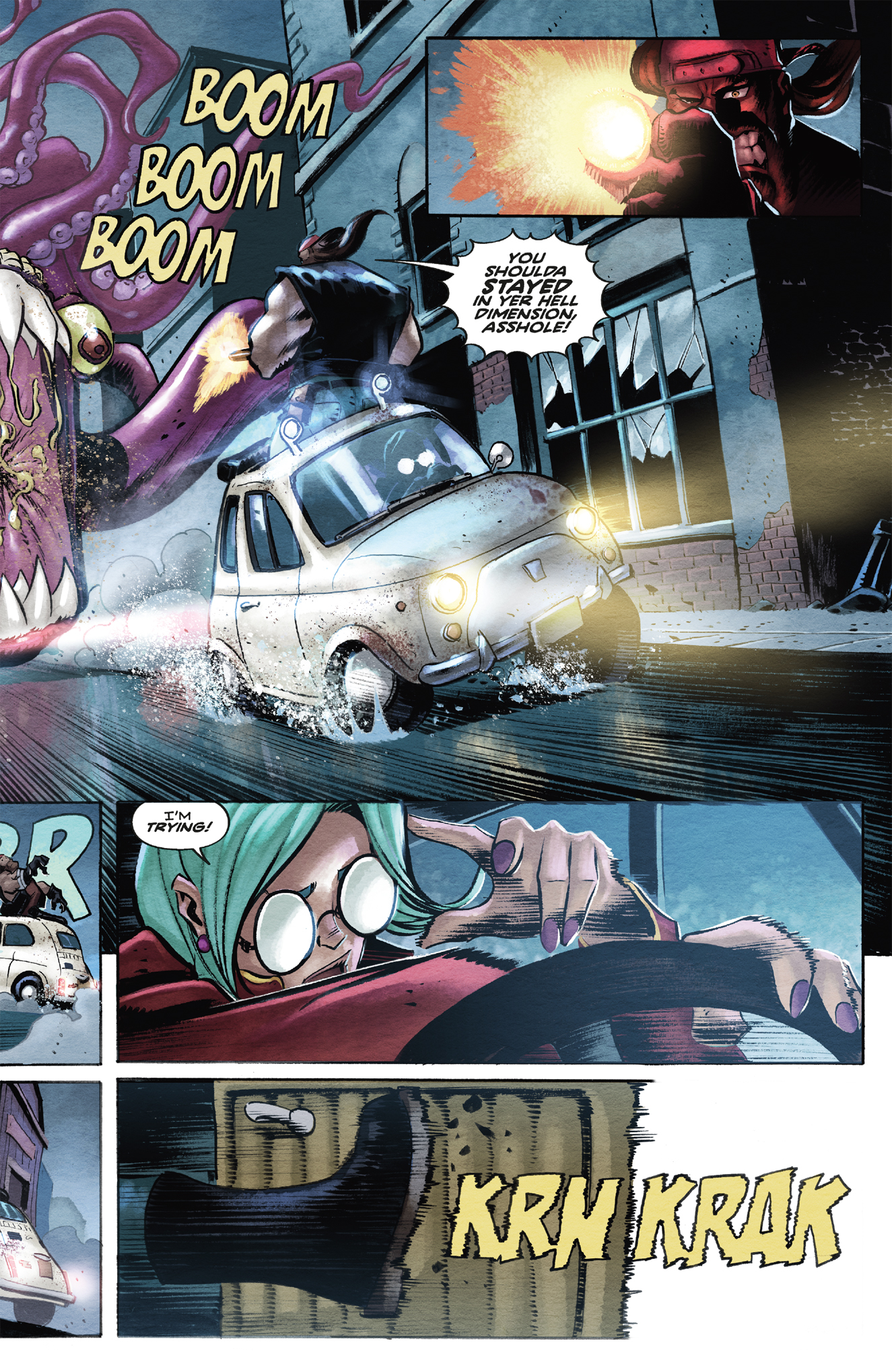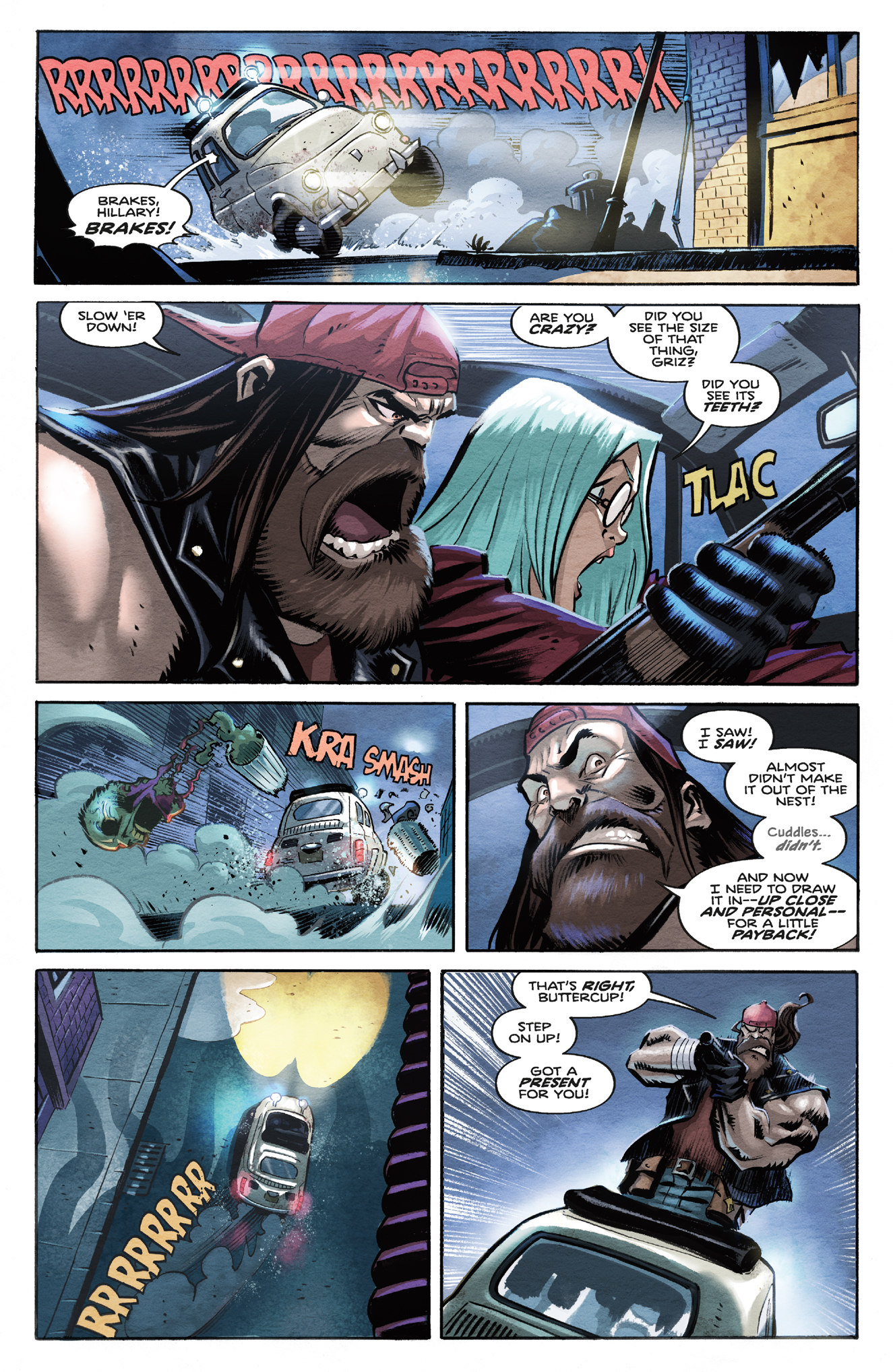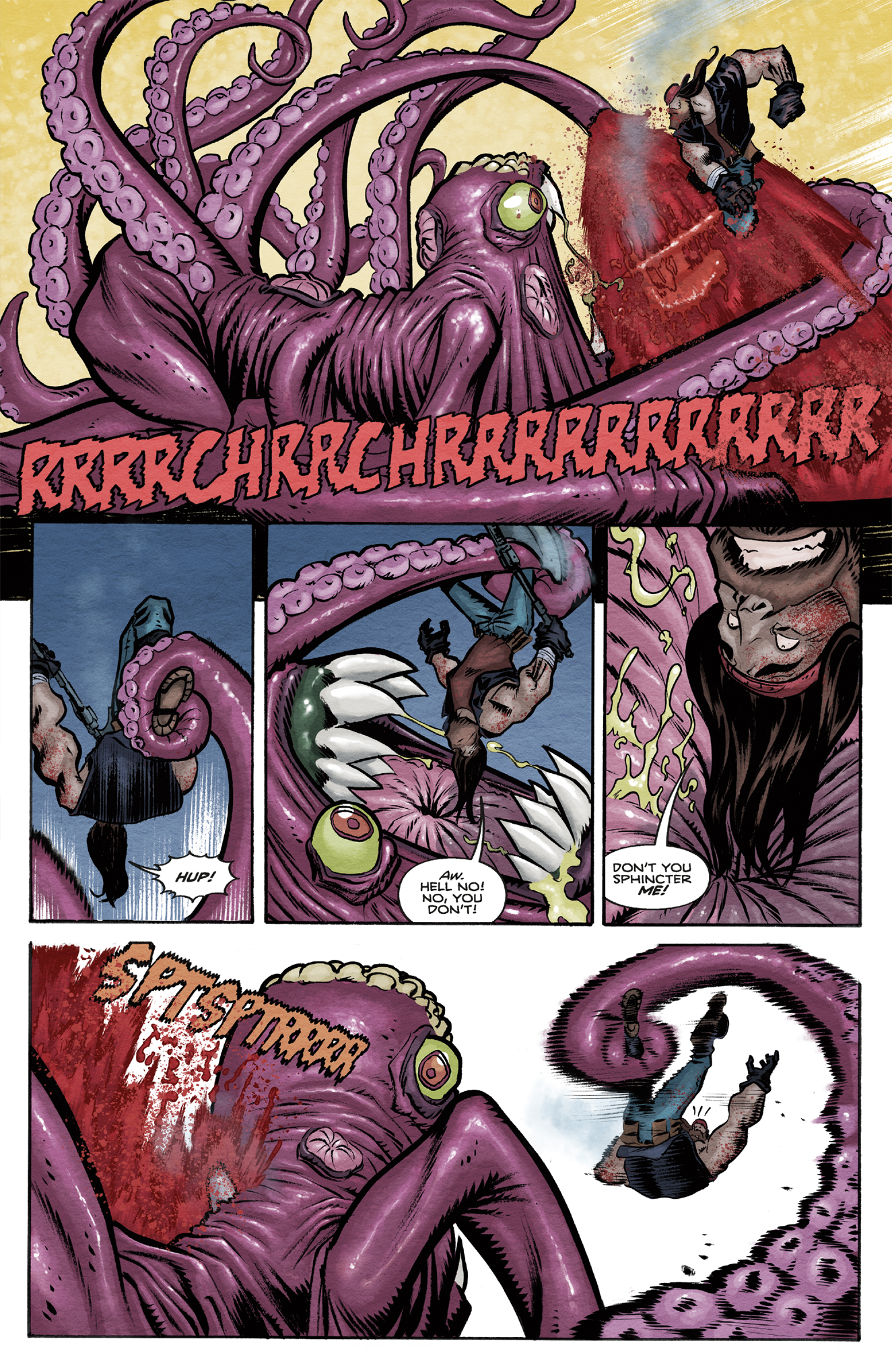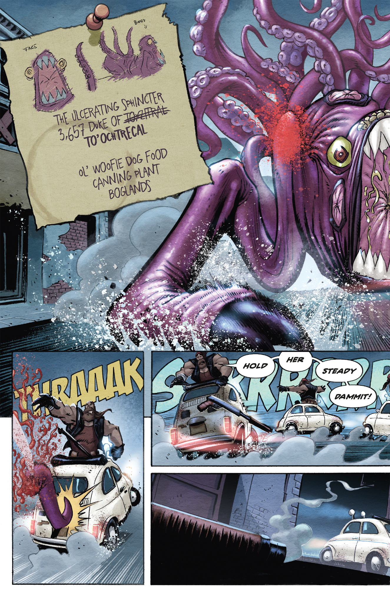 “I'm very excited about this comic,” adds Piazzalunga. “Cullen and I discussed creating a horror comedy with tentacled monsters. We are big fans of 80's horror films, Lovecraft, splatter and gore. Cullen did a fantastic job. When I read the scripts I was super excited and I enjoyed drawing, if you like all this, Griz and Cuddles are waiting for you with their chainsaws!"