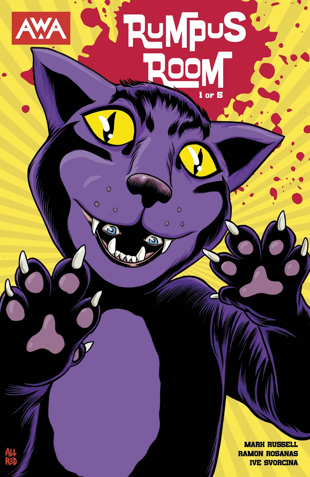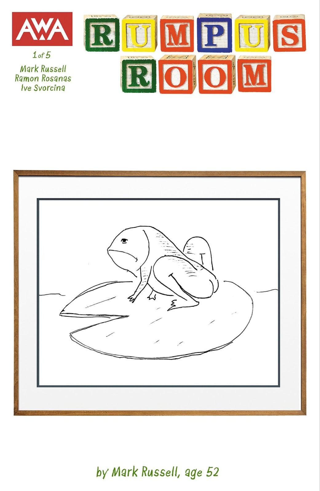 RUMPUS ROOM was created by writer Mark Russell and artist Ramon Rosanas, featuring colors by Ive Svorcina, letters from AndWorld Design, and with covers by Tony Harris. Russell has also illustrated "child-like art" variant covers for each issue. The first issue will be available on September 20, digitally and in comic book shops. For more information on RUMPUS ROOM and other titles from AWA Studios, visit them on Facebook, Twitter, Instagram, YouTube, and AWAStudios.net!
