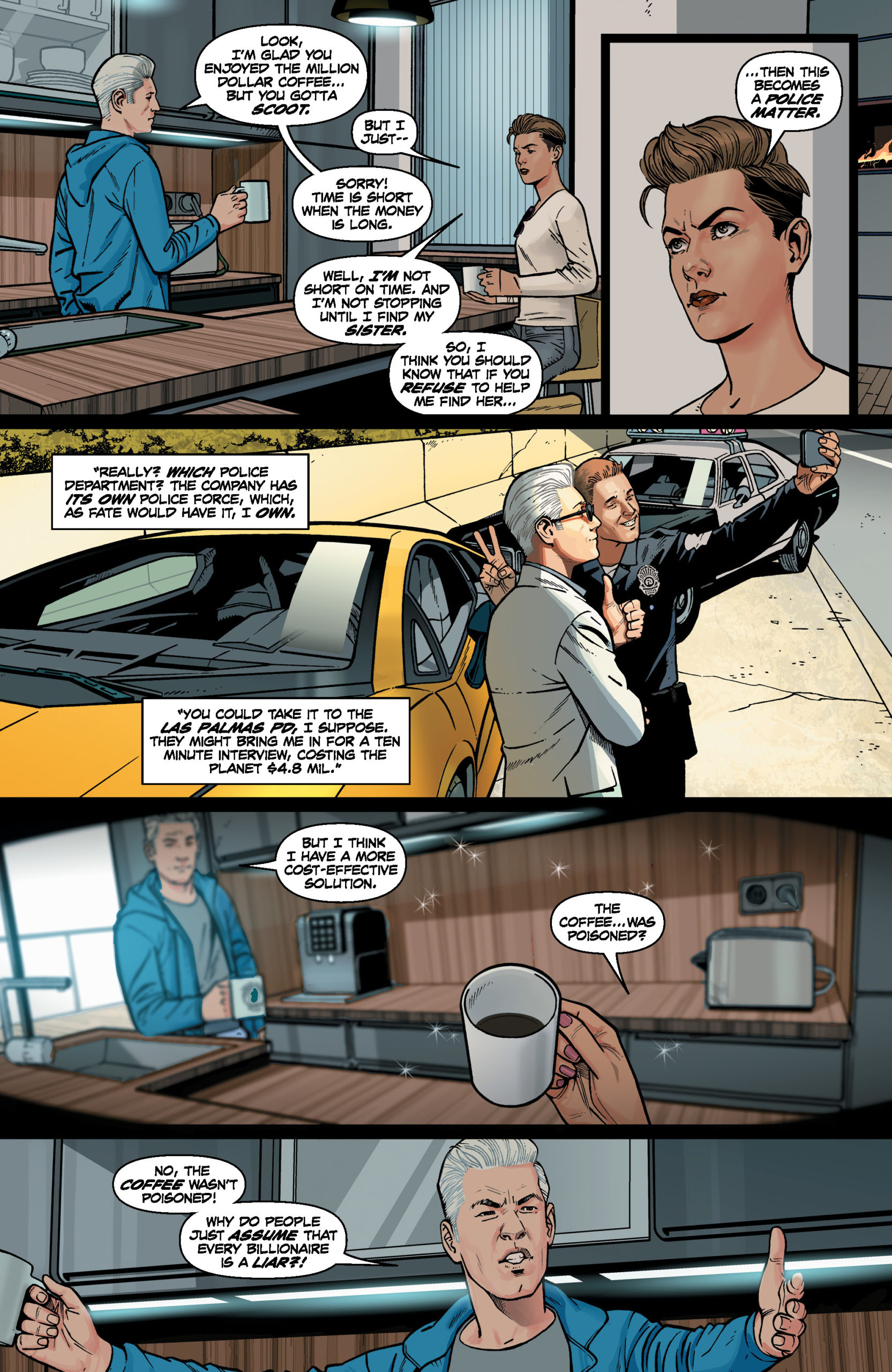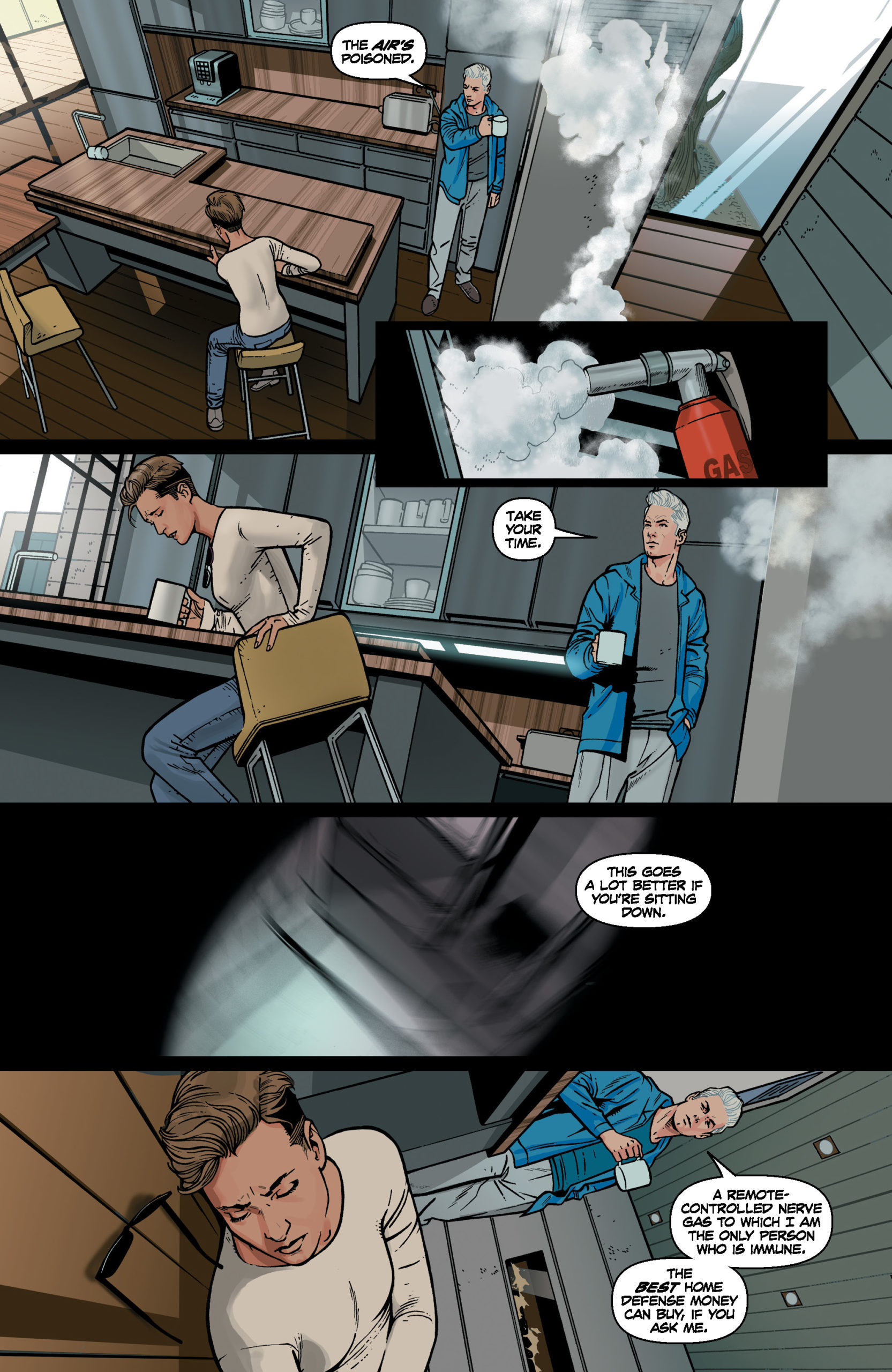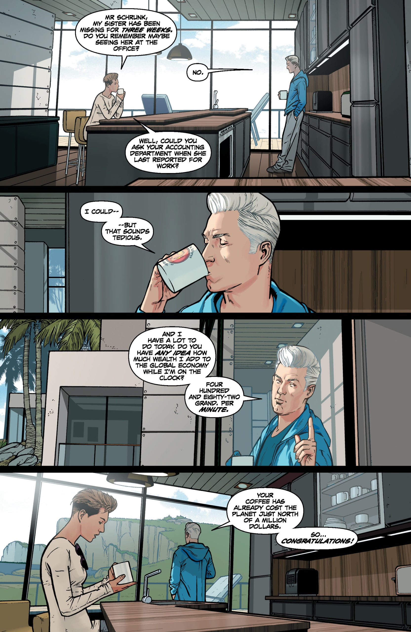 After winning the Eisner Award for “Best Humor Publication” in 2022 for his first AWA title, NOT ALL ROBOTS, Mark Russell returns to the comics publisher with his second original title. Expertly walking the tightrope between horror and humor, the Eisner, GLAAD, and Ringo Award-winning writer takes aim at the foundations of the American social structure and incisively dissects it alongside the feeling many share that things are going okay for you as long as you’re doing better than the people around you. As scary as these scenes may be, perhaps the scariest thing of all is how it turns the mirror back on the reader.