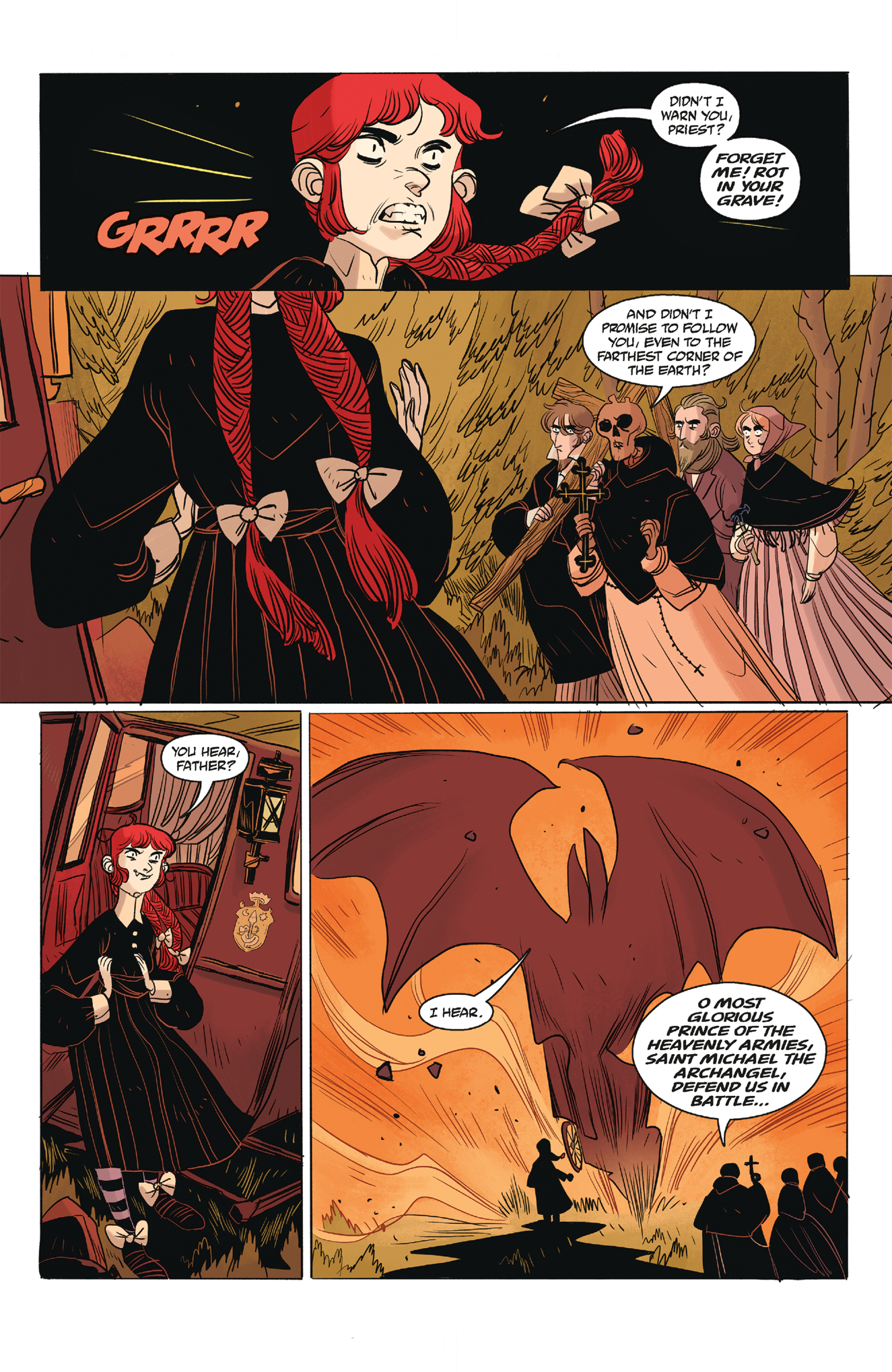 Rachele Aragno: Thank you very much! My collaboration with Mike began with a black-and-white sketch of mine that I posted on Facebook. She was a stern-looking little vampire who got all of Mike's attention, and we talked about her a bit and figured it would be cool to put her in a story. After a day or two, I already had the story in my hands and I was crazy with joy!