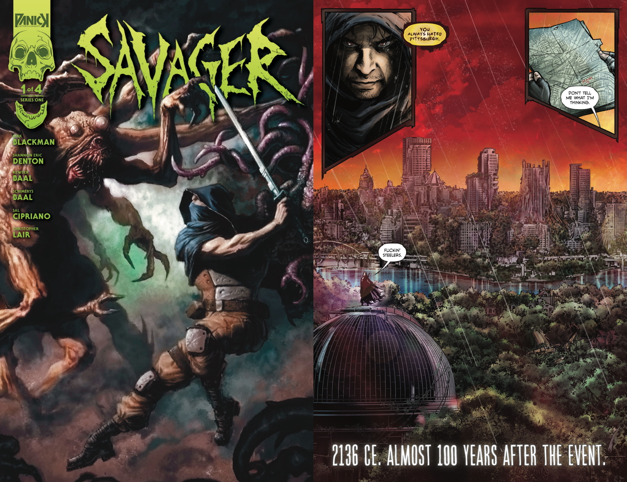 Shannon Eric Denton: Out the same day as Savager is Kraken with Titan Comics! Spectors, also with Titan, is coming soon and a few unannounced projects with Heavy Metal, Mad Cave, Storm King and more so keep following MonsterForgeProduction.com for updates on my stuff. And get ready to pick up Savager 2–4 from PANICK Entertainment!