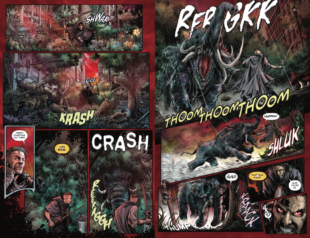 I love how Savager takes place nearly 100 years after humankind was infected by parasitic monsters. The overgrown landscapes remind me of a mutant-infested version of Life After People. Was that post-apocalyptic setting a fun creative sandbox for all of you to play in while working on this series?