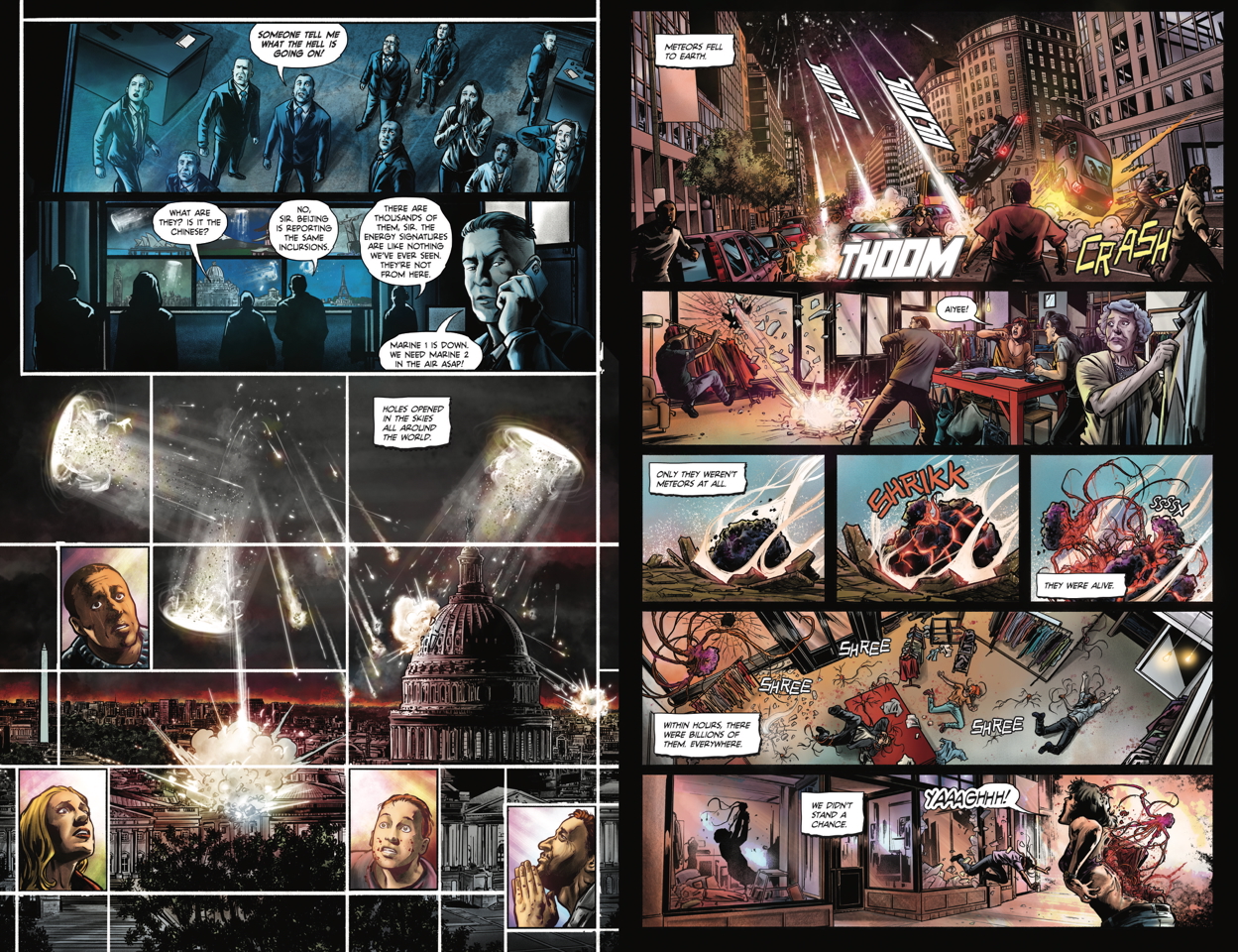 Dirk Blackman: Hopefully it's not too heavy-handed, but we wanted to touch on the feeling that in our world, in this time, we need to be better to each other, better to the planet, because it could all just go away. And if it does... there won't be anyone to mourn us. The planet will go on without us. But most importantly, we just want everyone to have a fun, gory time. We want the readers to say, "That was effing cool! What's next?!"