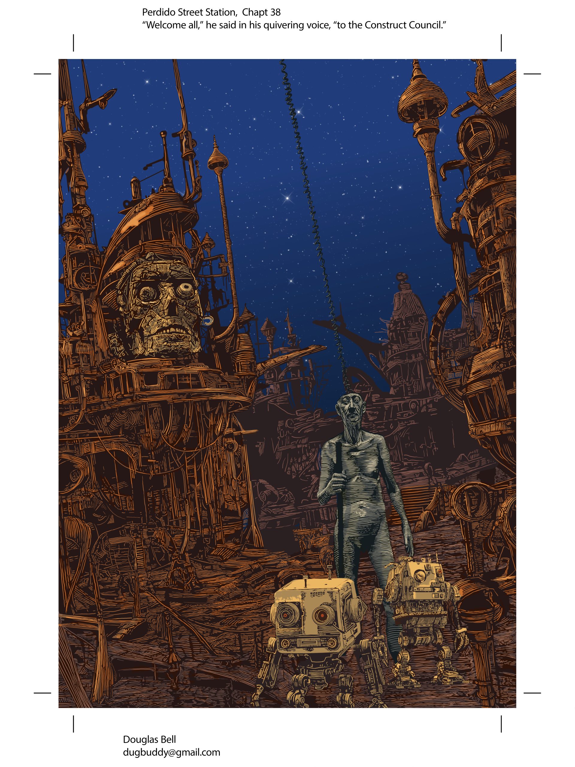 Thank you for taking the time to answer questions for us, Doug, and congratulations on your amazing artwork for The Folio Society’s limited edition release of China Miéville’s Perdido Street Station, timed to the novel’s 25th anniversary! How did you initially get involved with this exciting celebration of Miéville’s groundbreaking book?