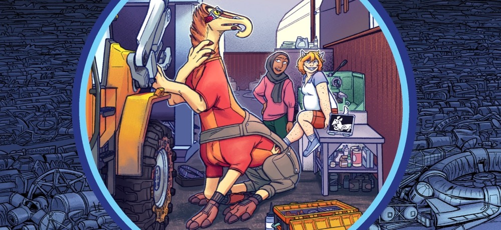 From the Press Release: Iron Circus — the premiere publisher of award-winning, critically-acclaimed graphic novels in the American Midwest, which has raised nearly 5 million dollars via crowdfunding — is proud to announce its latest campaign for RUNAWAY TO THE STARS, a hard sci-fi slice-of-life graphic novel from cartoonist Jay Eaton that will immerse readers in a universe at once intriguingly alien and painfully familiar. The main storyline follows Talita, a centaur aerospace engineer and cross-species foster kid, as she befriends a shipwrecked AI pirate named Bip who convinces Talita to help it escape the planet of Dirtball. Focused on communication, accommodation, and everyday life in co-species spaces, the intricate and meticulously built world of RUNAWAY TO THE STARS will travel to readers on this planet via Kickstarter this spring. Head to Kickstarter to support the the campaign.