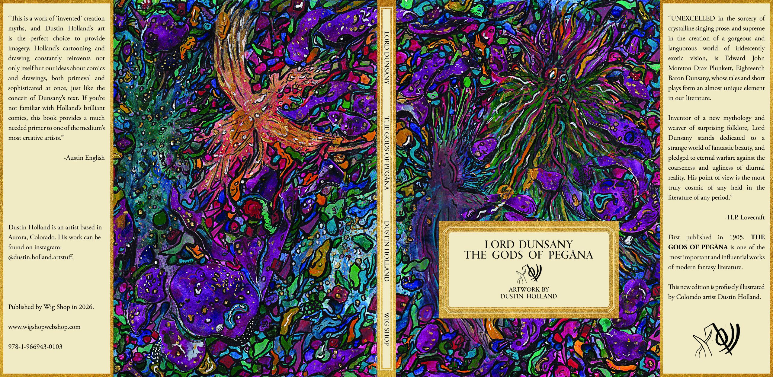 From the Press Release: First published in 1905, Lord Dunsany’s THE GODS OF PEGANA is one of the most important and influential works of modern fantasy literature. The groundbreaking, imaginative novel introduced readers to a pantheon of unforgettable gods and a rich new mythology that would inspire H.P. Lovecraft, J.R.R. Tolkien, Ursula K Leguin, and generations of fantasy and science fiction creators. Now Denver’s Wig Shop, a prestige publisher and purveyor of independent comics and art books is collaborating with artist Dustin Holland on a hallucinatory visualization of Dunsany’s kaleidoscopic cosmic fancies featuring full-color paintings on every page. The 7X10, 139-page deluxe paperback is coming soon to Kickstarter.