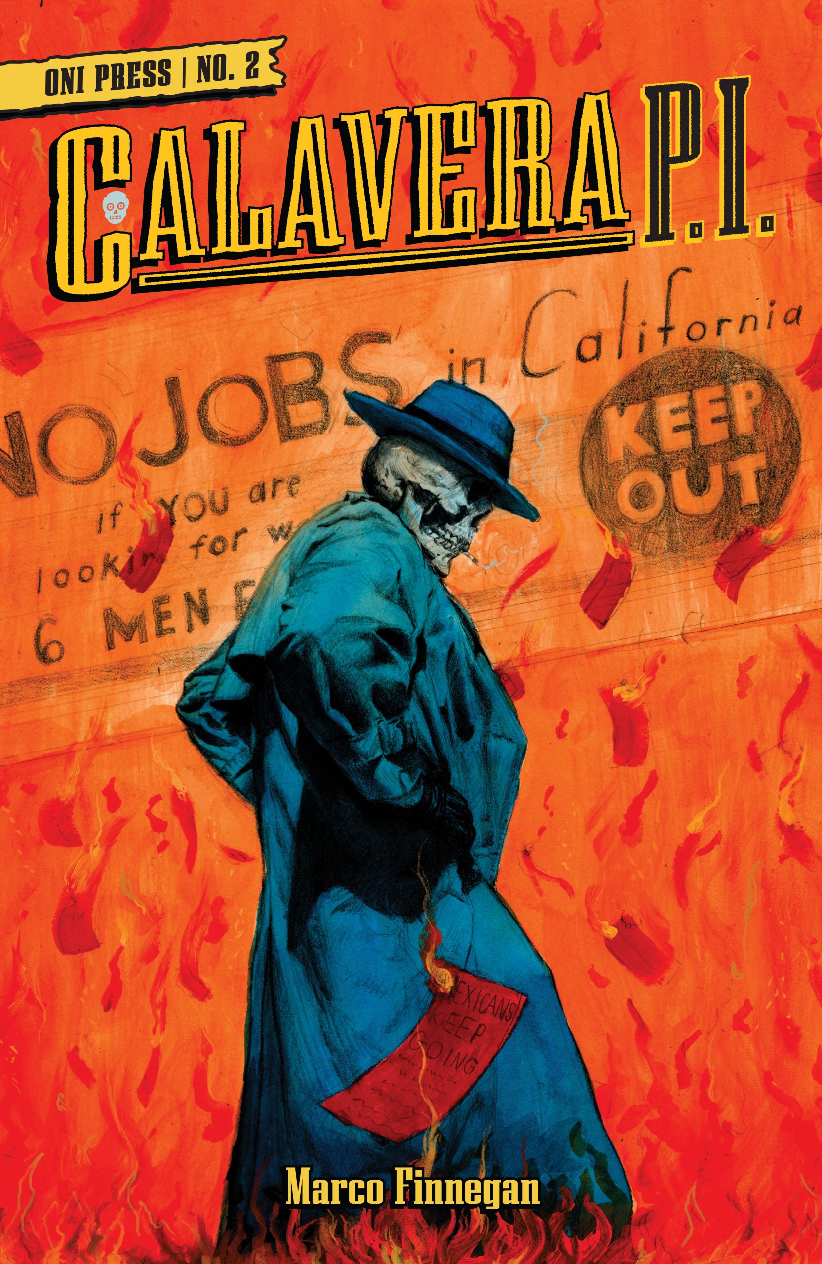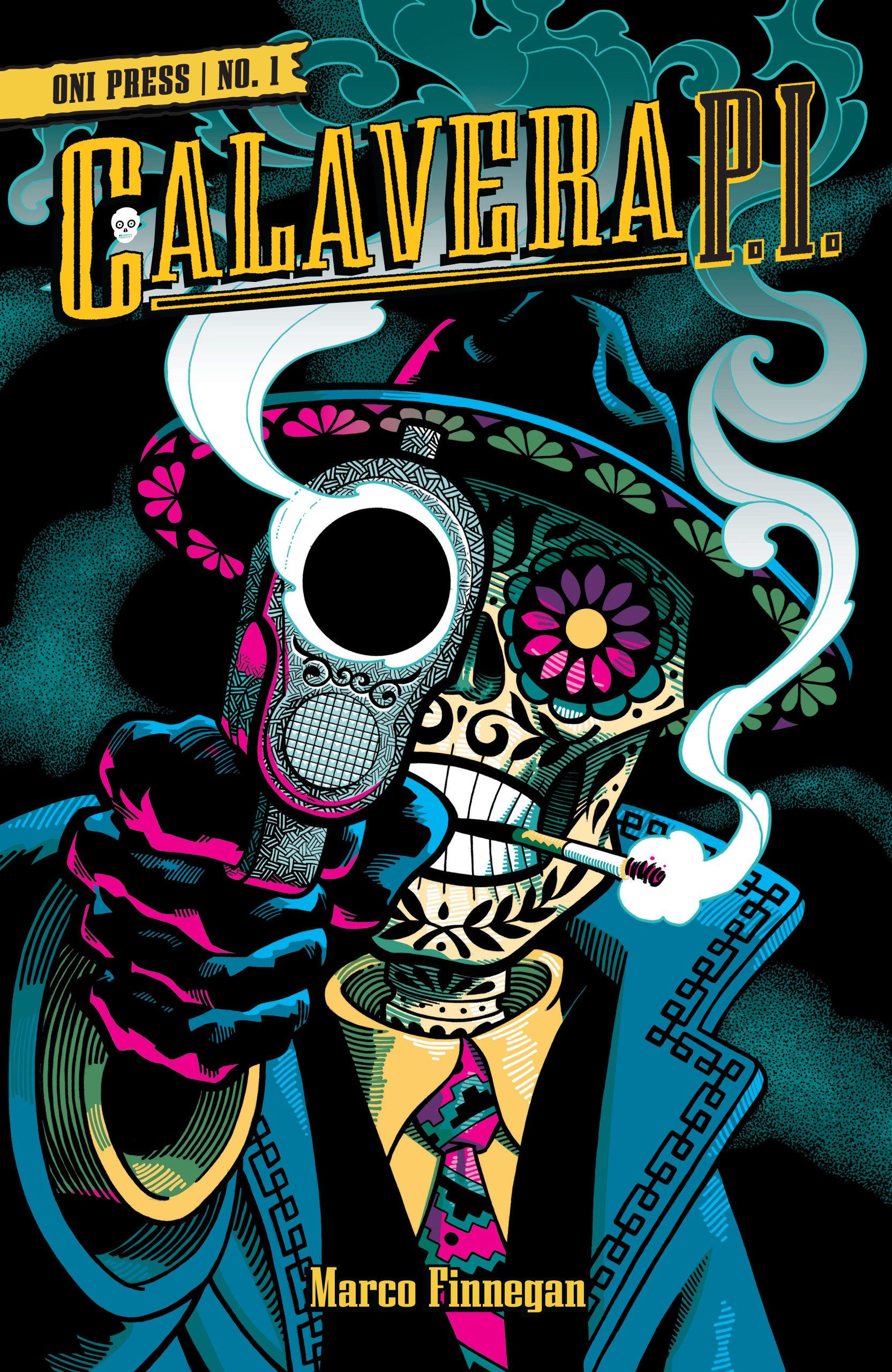 Marco Finnegan: Thanks so much for having me. It’s pretty amazing that I was able to make this book with Oni Press. Calavera, P.I. is such a personal story for me, so for the fine folks at Oni to believe in it is still a dream come true. The fact that people dig the series is icing on the cake. The trade looks so good and really completes the dream of this being a pulp that you could put on your shelf next to Hammet’s OP and Cooke’s Parker.