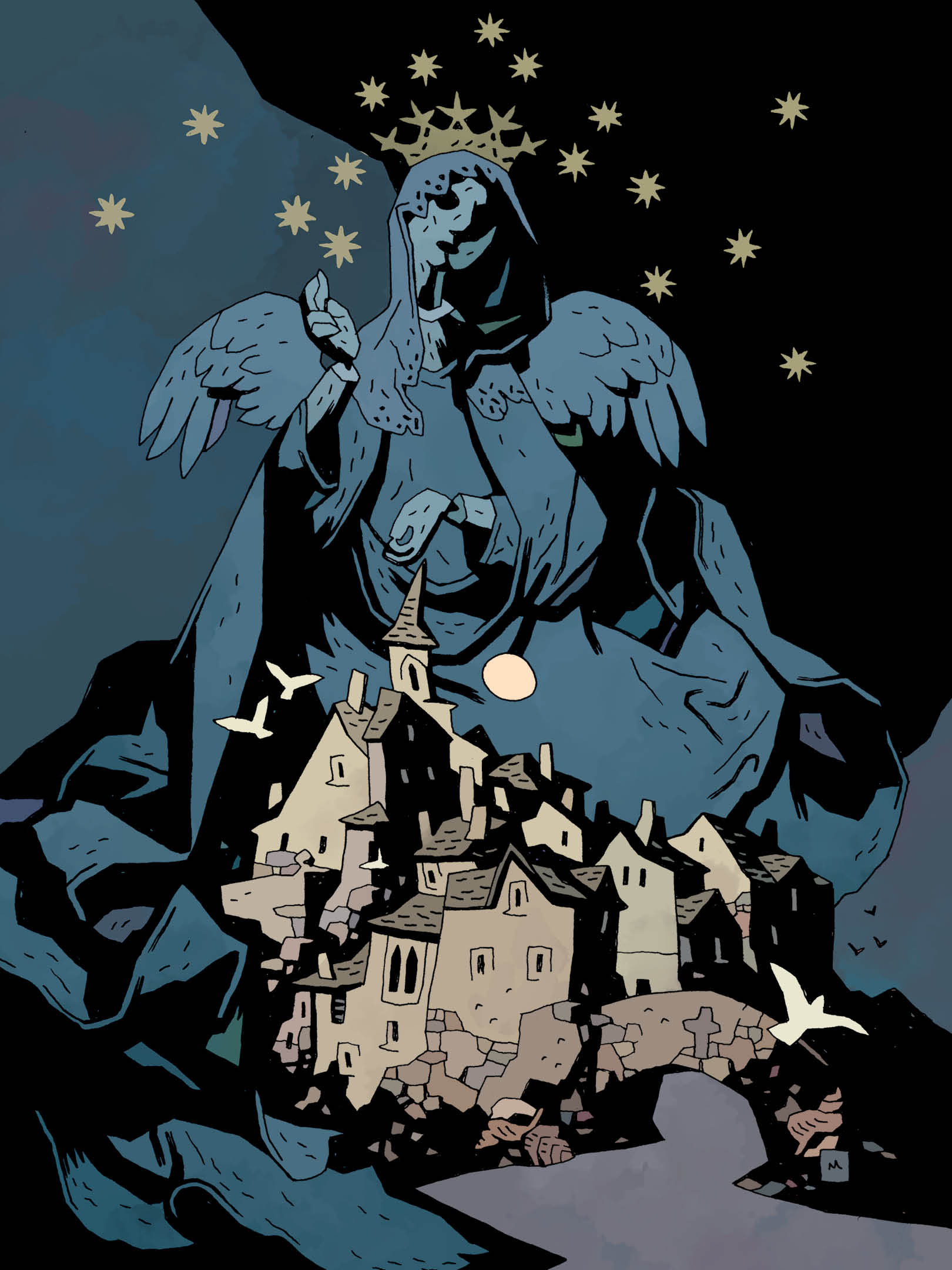 “I’m happy with what I did and thrilled with how the book is turning out, “ said Mignola. “My thanks to Josh O’Neil for giving me the opportunity and to Maelle Doliveux for her brilliant design work. And, of course, thanks to the great Dave Stewart for stepping in to color the illustrations.”