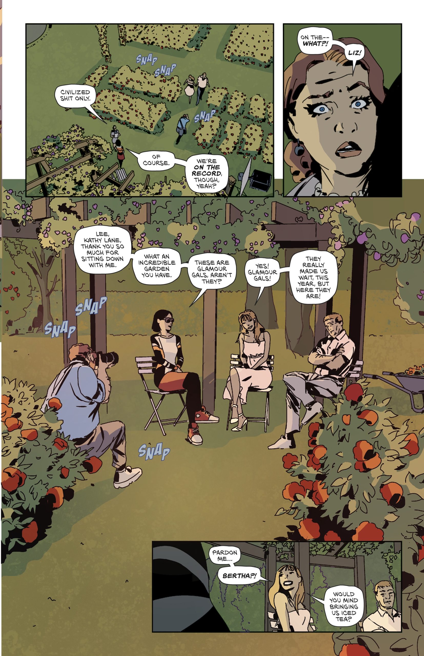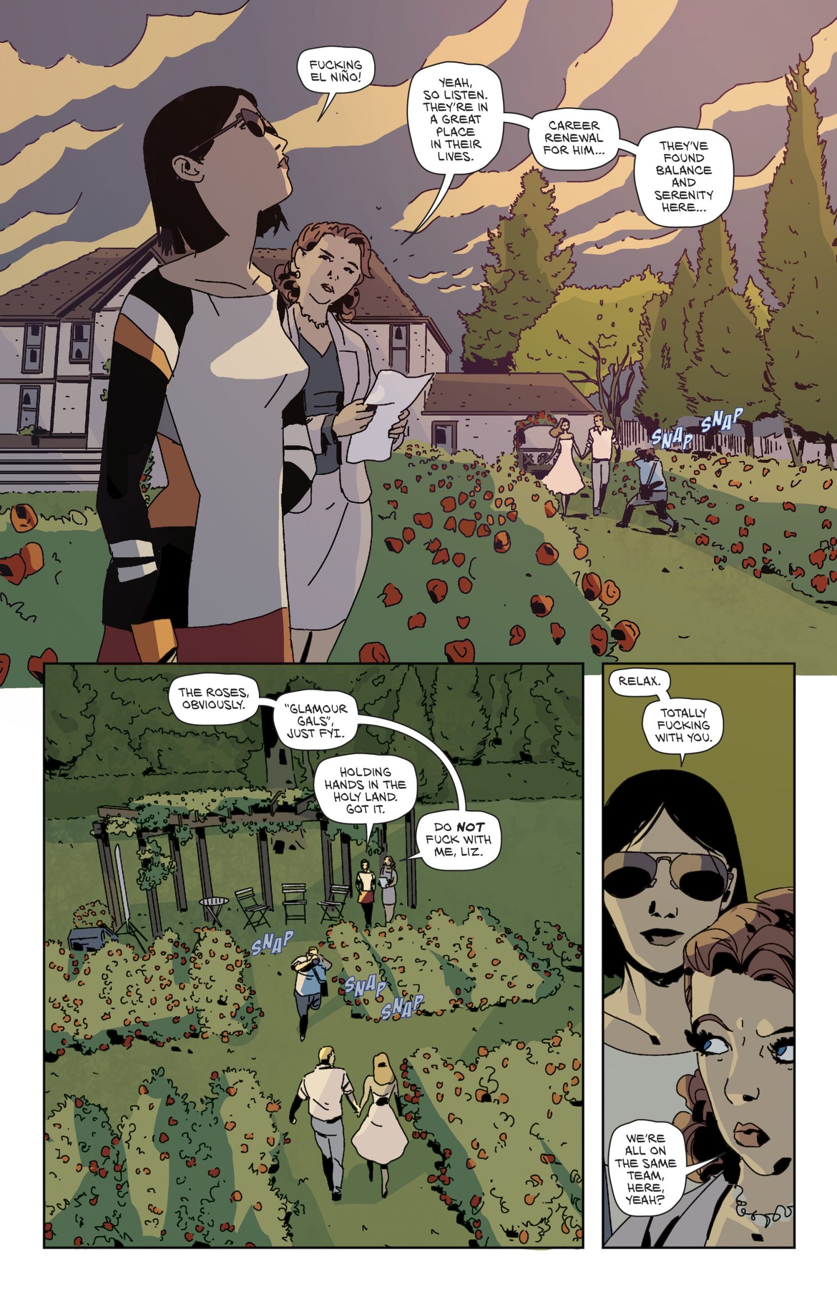 It was really fun to jump to 1995, which is the onset of the digital revolution, so the world is undergoing serious change. Emails and cell phones are now becoming part of people’s lives, and capturing the characters’ relationships with all these new elements had to be a big part of how the story is told. As Palomino: Volume 4 begins, we find Liz, with a mild case of arrested development—clearly due to the tragic events of her youth. However, she is still that badass old soul, now with the full agency of adulthood, so it was very important for me to find that voice, which is fun and powerful, yet insecure and vulnerable at the same time.