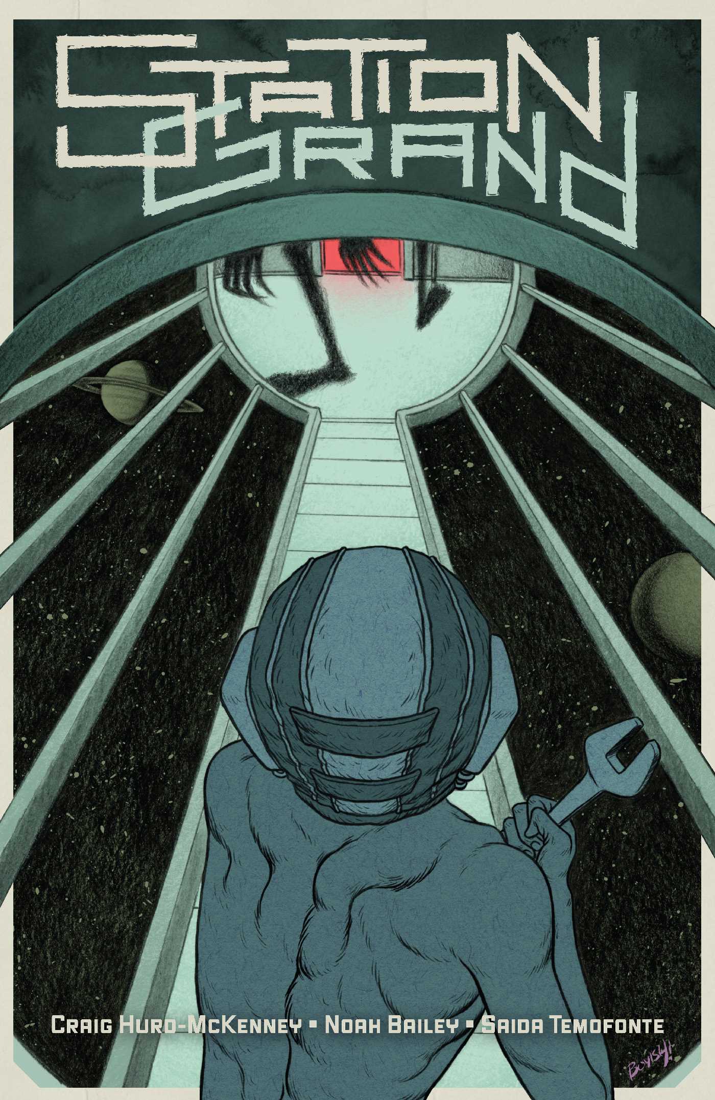 Insomnia can be difficult to endure in itself, but what happens when you can't sleep in the far reaches of deep space and your only companion is a computer and your unraveling psyche? That intriguing (and horrifying) question is explored in stunning visual style within the pages of Station Grand, a new sci-fi graphic novella written by Craig Hurd-McKenney, illustrated by Noah Bailey, and lettered by Saida Temofonte.