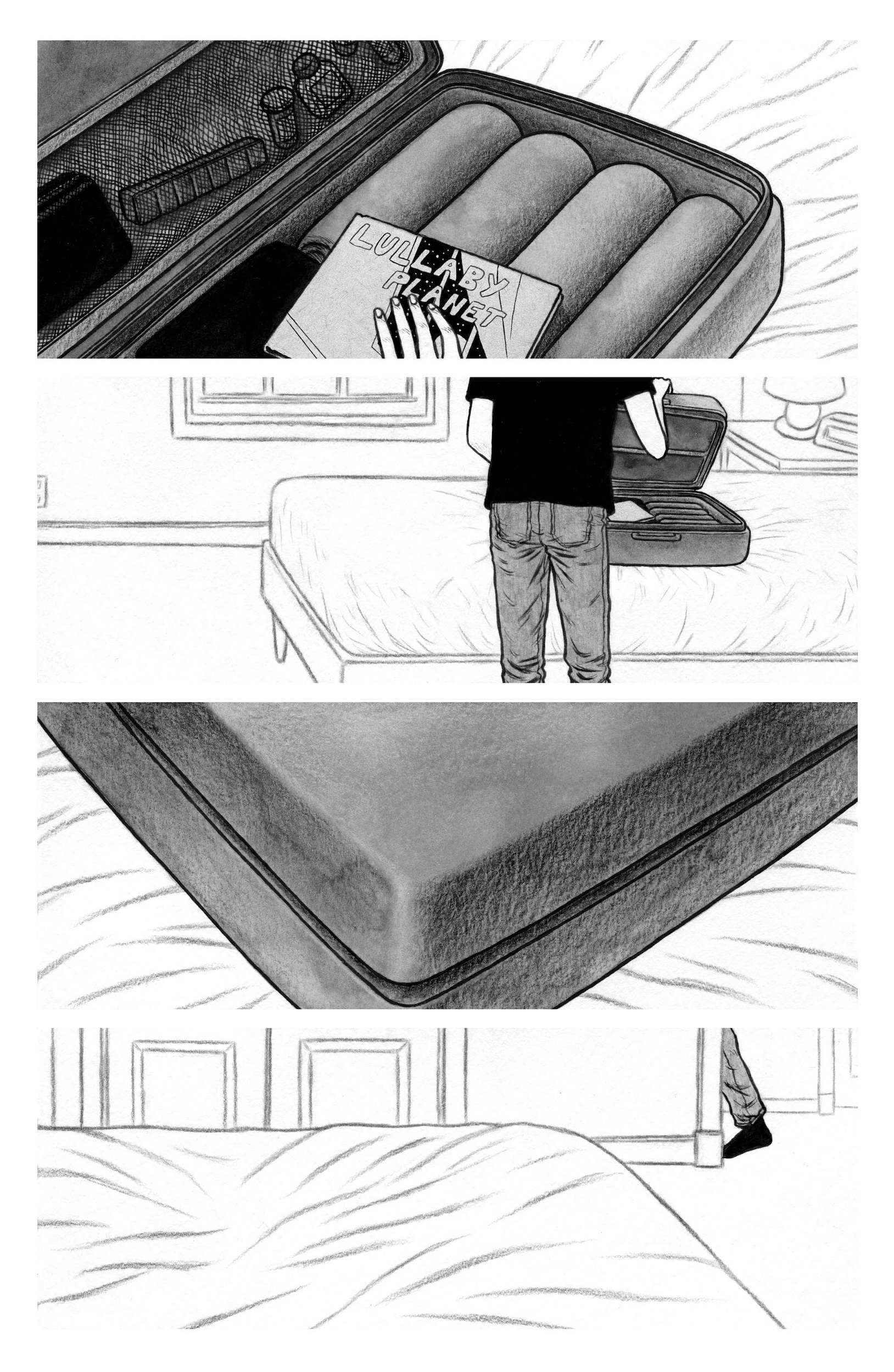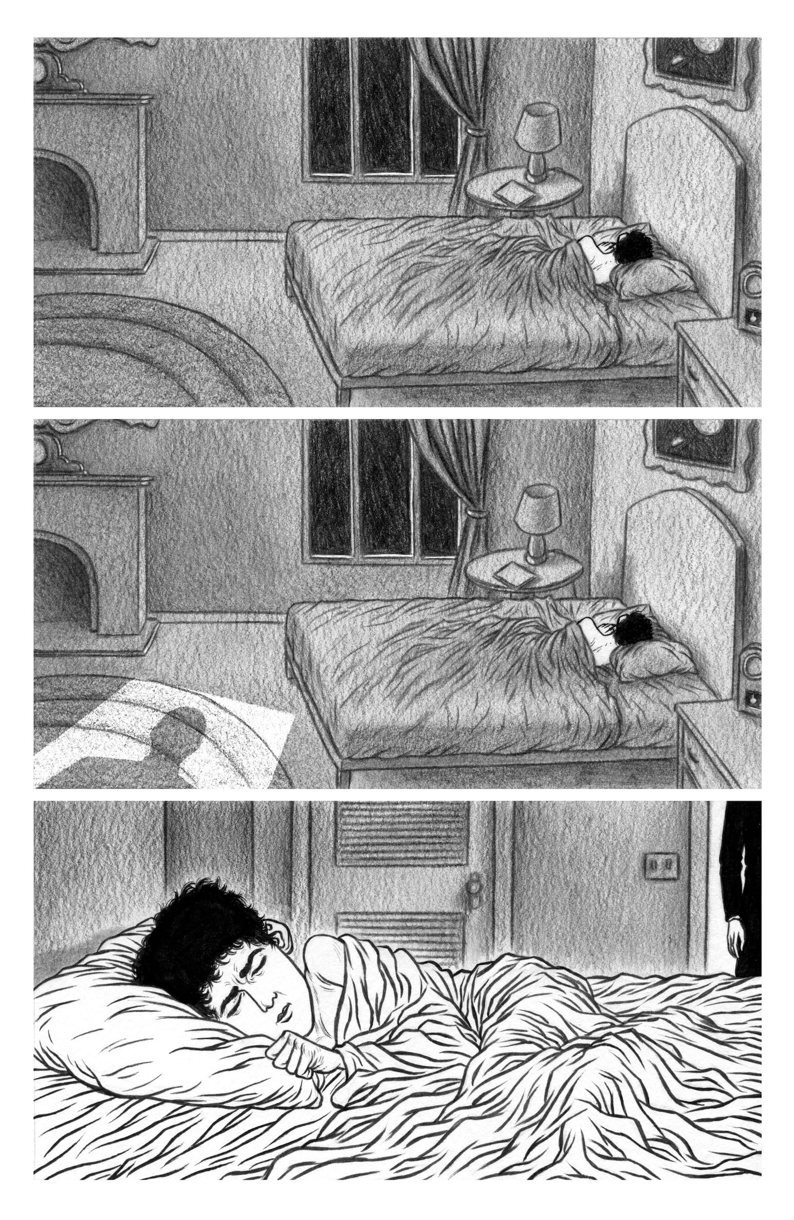 Noah Bailey: Thank you!! I really appreciate the kind words! I think the most exciting thing for me was trying to visually convey Michael’s mental state and his shifting perception with different mediums and styles throughout. Also, rendering the environments was just an absolute blast. I have grown really fond of drawing backgrounds, and this story was a great opportunity to get a bit experimental with it!