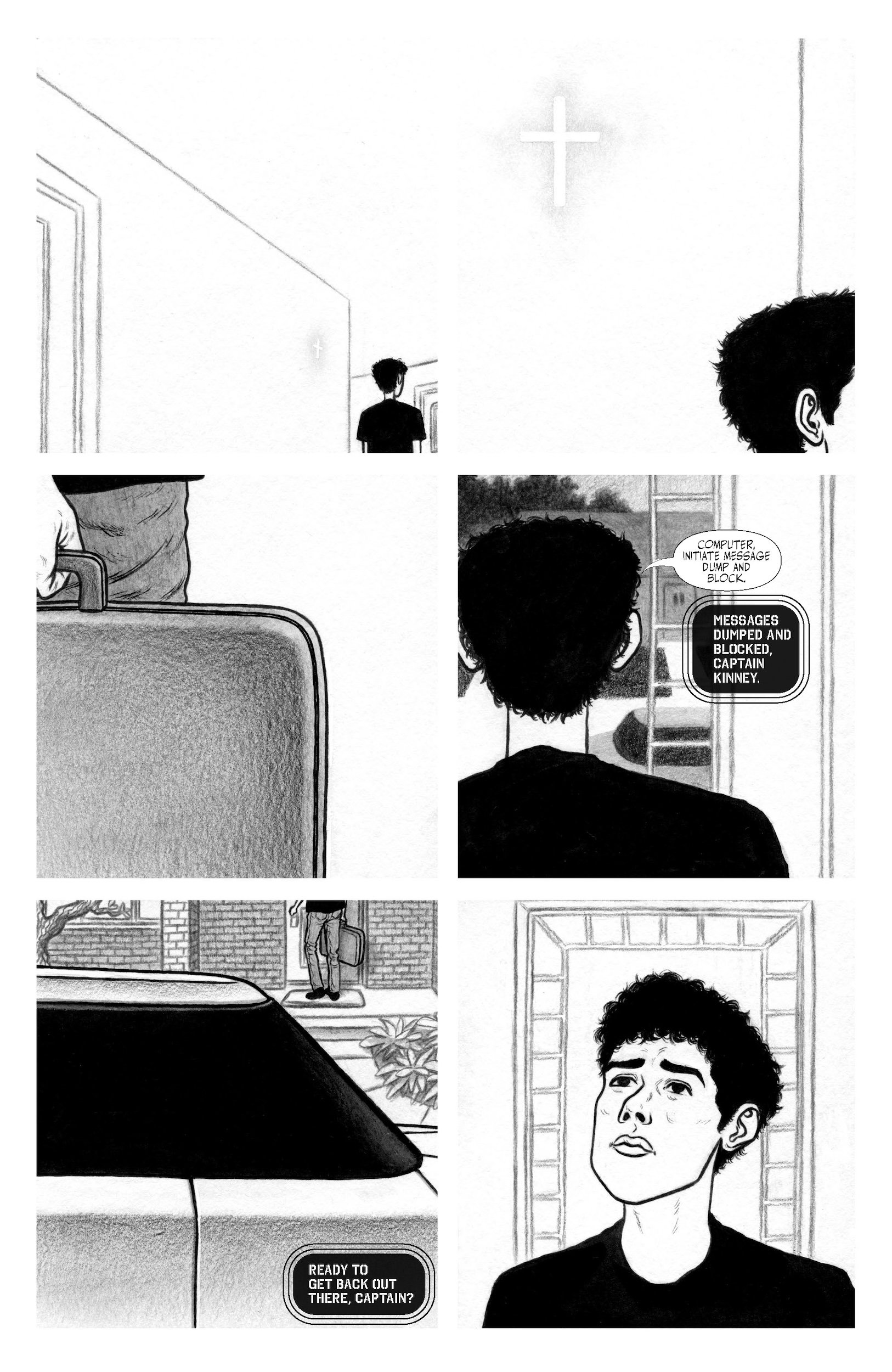 If I’m answering about an art moment, I’m excited for people to experience the six-panel page where Dr. Kinney is eating breakfast, overlaid with other elements from the story. It is a page that Noah held for a while, to surprise me with it. It brings me joy every time I see it. Noah demolished that page.
