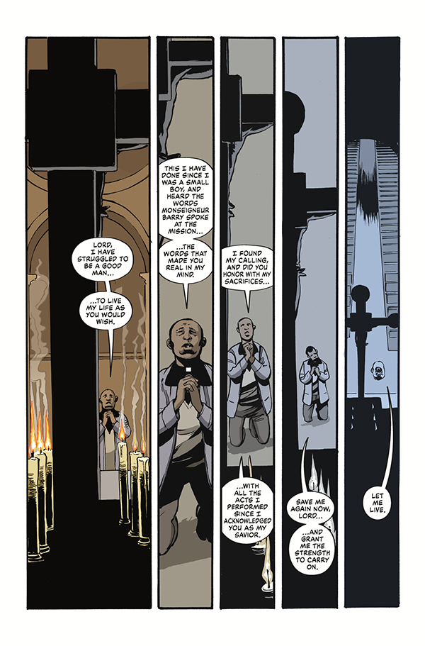Paul Levitz: I think a lot of us today aren’t affiliated enough with a religion to get to know the people who choose to devote their lives to work focused through their religion. I’ve been lucky enough to have a couple of friends whose callings have taken them that way, and that certainly influenced me. Not sure if the “look” I’m giving represents the views of any group accurately, but it was interesting to think about.