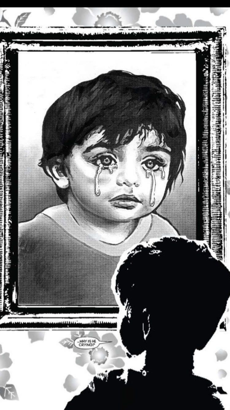 Issue #2: "Nadia has reluctantly agreed to seek the counsel of Ms. Borisov, a medium who is convinced something strange and otherworldly is happening in their new home. Unaware of the terror that awaits, Ms. Borisov reaches out to the enigmatic entity that dwells inside of The Crying Boy. Meanwhile, on the north side of Philadelphia, a fallen, disgraced priest, Father Cyril Murray, has his own personal history with the painting. When a visitor from his past reveals his greatest fear, it's a race against time to save another family from the demon that hides within The Crying Boy!"