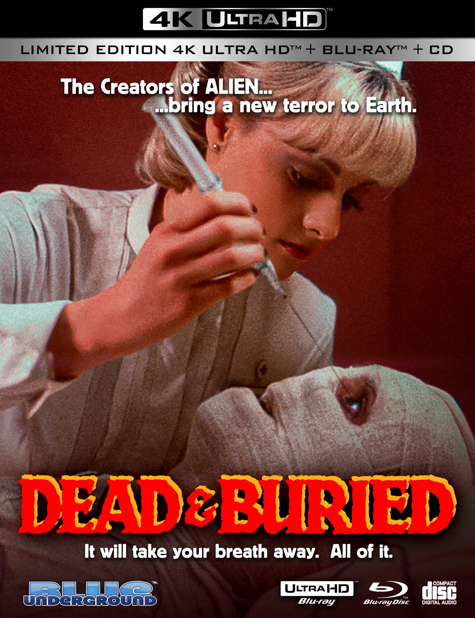 Melody Anderson (FLASH GORDON), Lisa Blount (PRINCE OF DARKNESS), and Robert Englund (A NIGHTMARE ON ELM STREET) co-star in this genuinely chilling horror hit written by Ronald Shusett and Dan O’Bannon (ALIEN), directed by Gary A. Sherman (POLTERGEIST III), and featuring ultra-grisly gore effects by Oscar® winner Stan Winston (JURASSIC PARK). In honor of its 40th Anniversary, Blue Underground is proud to present DEAD & BURIED in an eye-popping new restoration approved by Director of Photography Steven Poster, ASC (DONNIE DARKO), scanned in 4K 16-bit from its 35mm IP, with Dolby Vision HDR and Dolby Atmos audio, and packed with exclusive new and archival Extras!