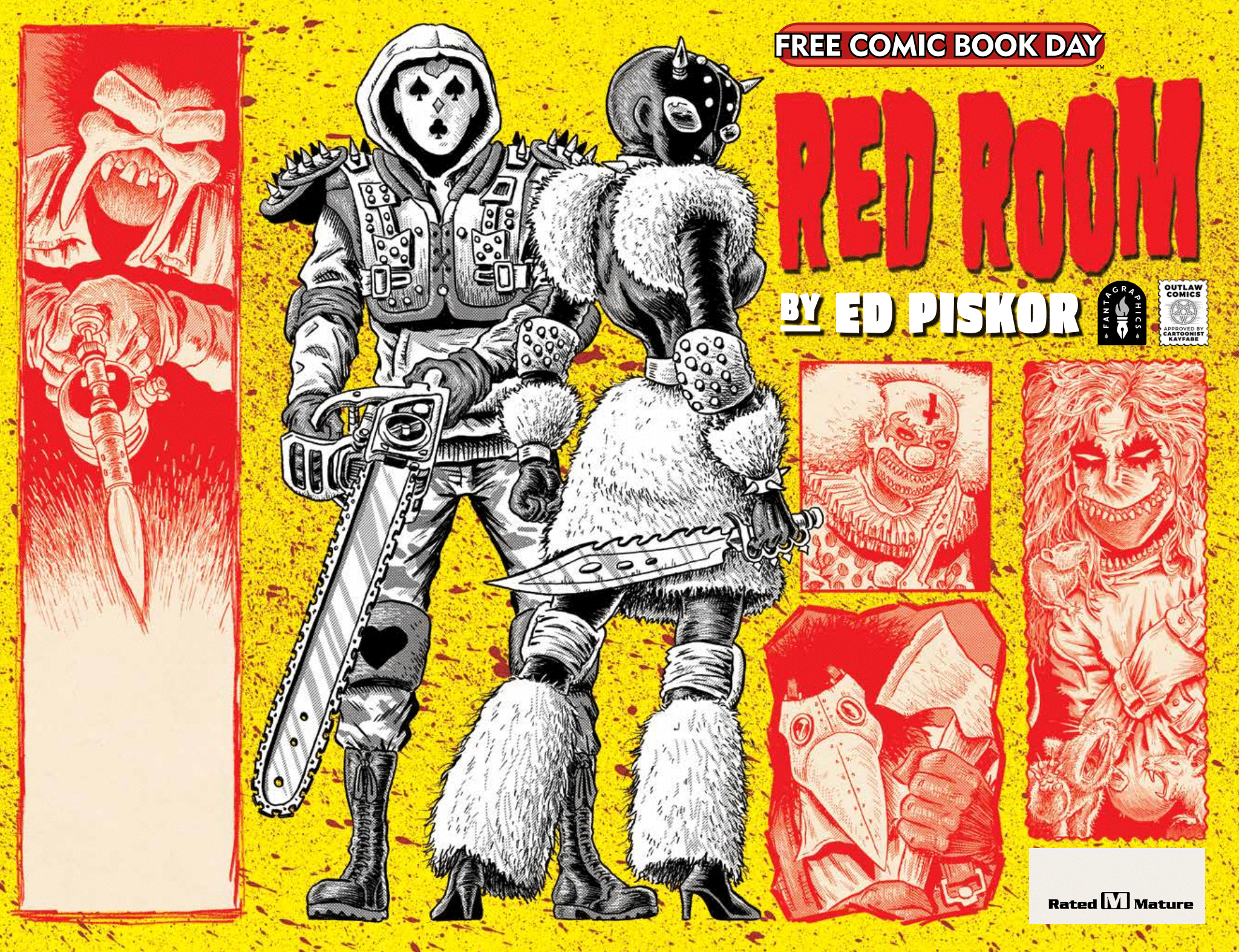 SEATTLE, WASH., March 18, 2021—Eisner Award-winning cartoonist Ed Piskor’s ambitious, new horror comic book series Red Room is getting a Free Comic Book Day Issue with Fantagraphics. The Red Room Free Comic Book Day issue will showcase the dark and twisted world of Red Room, where criminals livestream murders on the dark web for fun and profit. Fantagraphics will publish the debut issue of Red Room on May 19, 2021 with an oversized 64-page first issue, featuring a standard cover by Piskor, as well as orderable variant covers by Piskor, Street Angel artist Jim Rugg (who co-hosts the popular Cartoonist Kayfabe with Piskor) and superstar artist Peach Momoko. The Red Room Free Comic Book Day issue will be available nationwide on August 14, 2021.