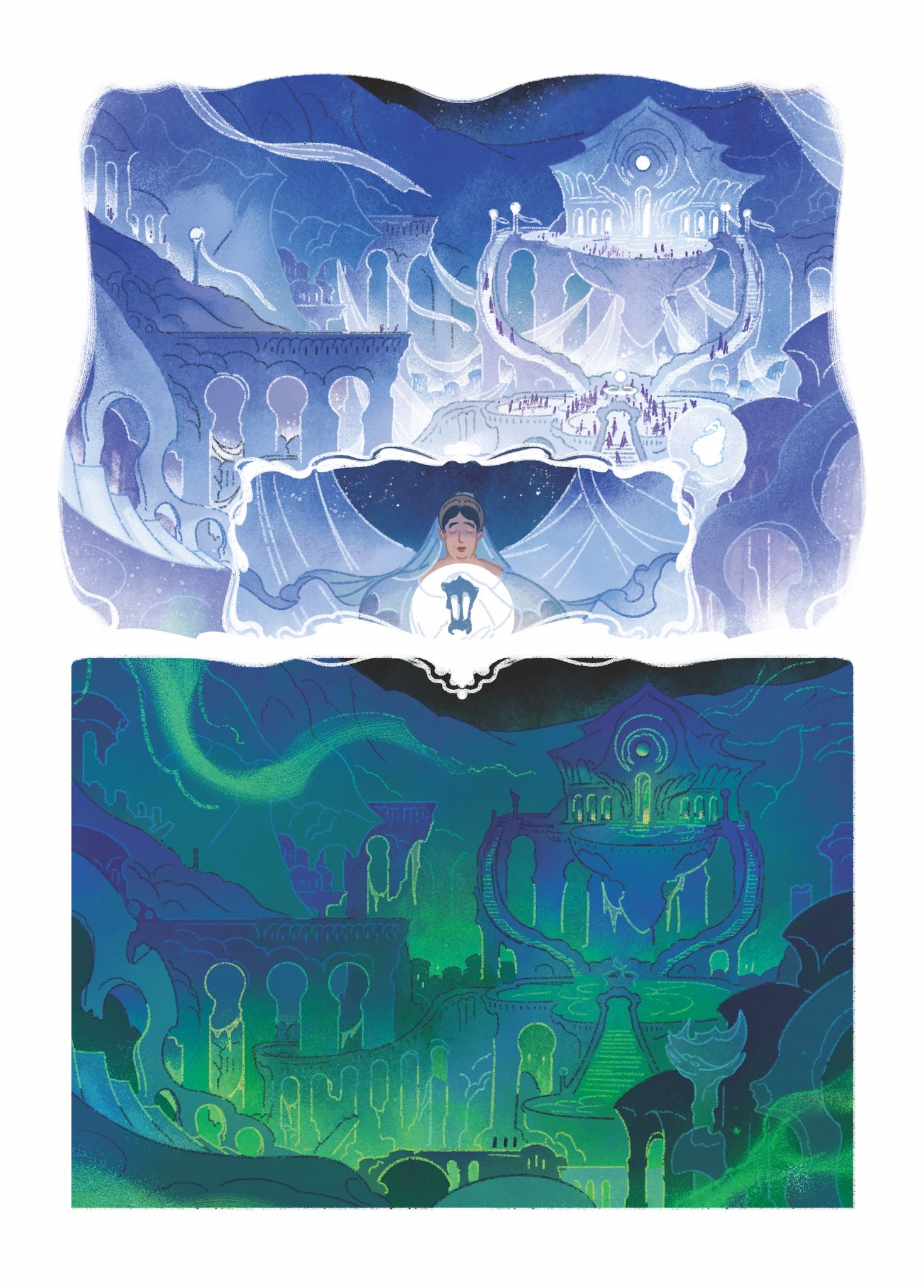 “In Volume 2, Maddy and Nura the Lamplighter race against time to return the souls of the living and bring daylight back to the world, facing the many mysteries of the Moon City and the darkest depths of the Night Mother’s Lunar Mansion itself in order to do it,” said author Jeremy Lambert. “We can’t wait to pull the curtain back even further on this fantasy world and introduce you to all manner of Moonfolk! (Just do us a favor and be particularly careful around the Sleep Ensemble).”