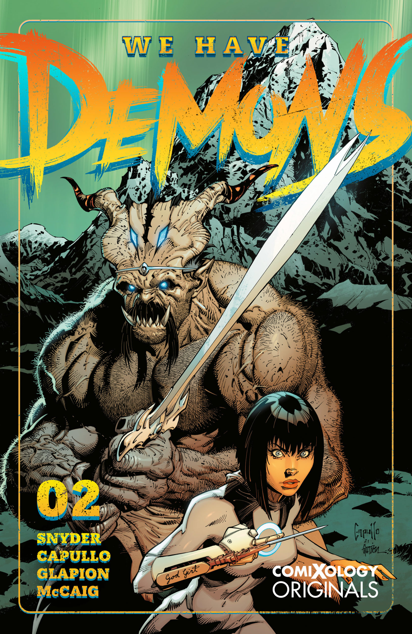 We Have Demons features full throttle entertainment by two comic book megastars, featuring action, conspiracies, secret organizations, monsters, mayhem, and a climactic war of good and evil with no less than the fate of the world hanging in the balance. The periodical issues will be released monthly, with each issue featuring bonus material and a main cover by Greg Capullo. Each issue will also have variant cover options including a foil variant cover of the main cover as well as a variant cover by one of Snyder’s incredible collaborators: