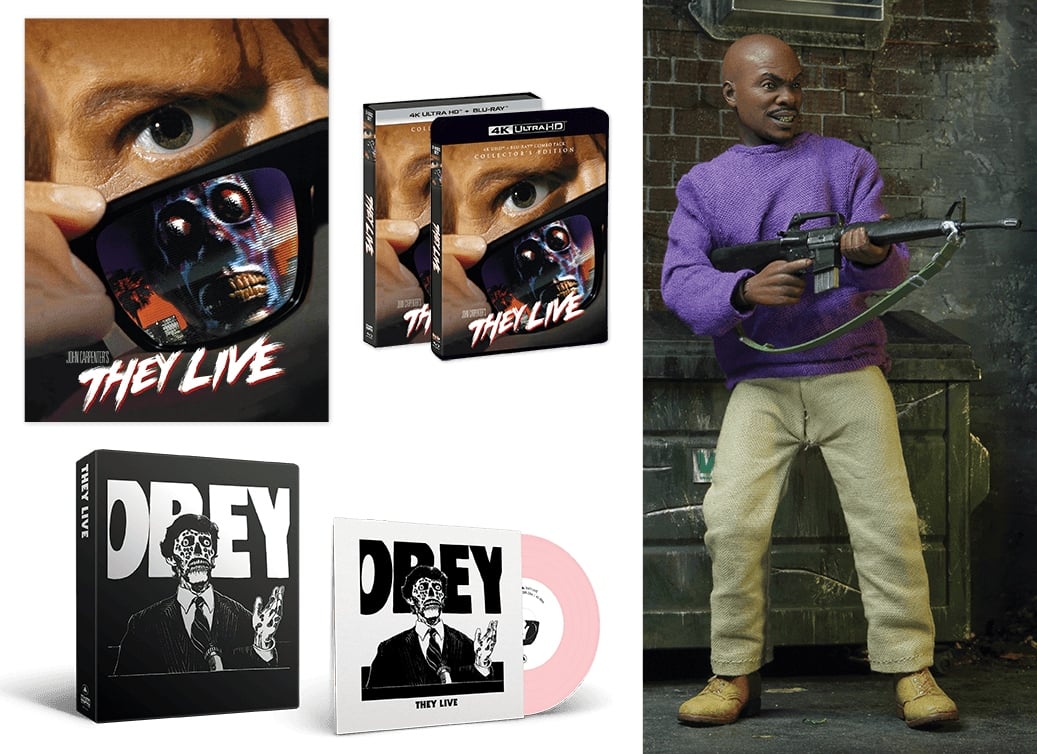 Press Release: On December 8, 2020, Scream Factory™ celebrates the politically-charged science fiction thriller THEY LIVE with a new 4K UHD/Blu-ray™ release, as well as a Limited Edition NECA action figure and Sacred Bones 7” vinyl. Horror master John Carpenter (Halloween, The Thing) directs this heart-pounding thriller in which aliens are systematically gaining control of the Earth by masquerading as humans and lulling the public into submission. The 2-disc UHD/Blu-ray™ combo release THEY LIVE COLLECTOR’S EDITION (4K UHD/ BLU-RAY™) marks the first time Carpenter’s popular sci-fi cult classic has been released in 4K Ultra High Definition in North America. It will include all previous bonus features from the prior 2012 Scream Factory Collector’s Edition release.