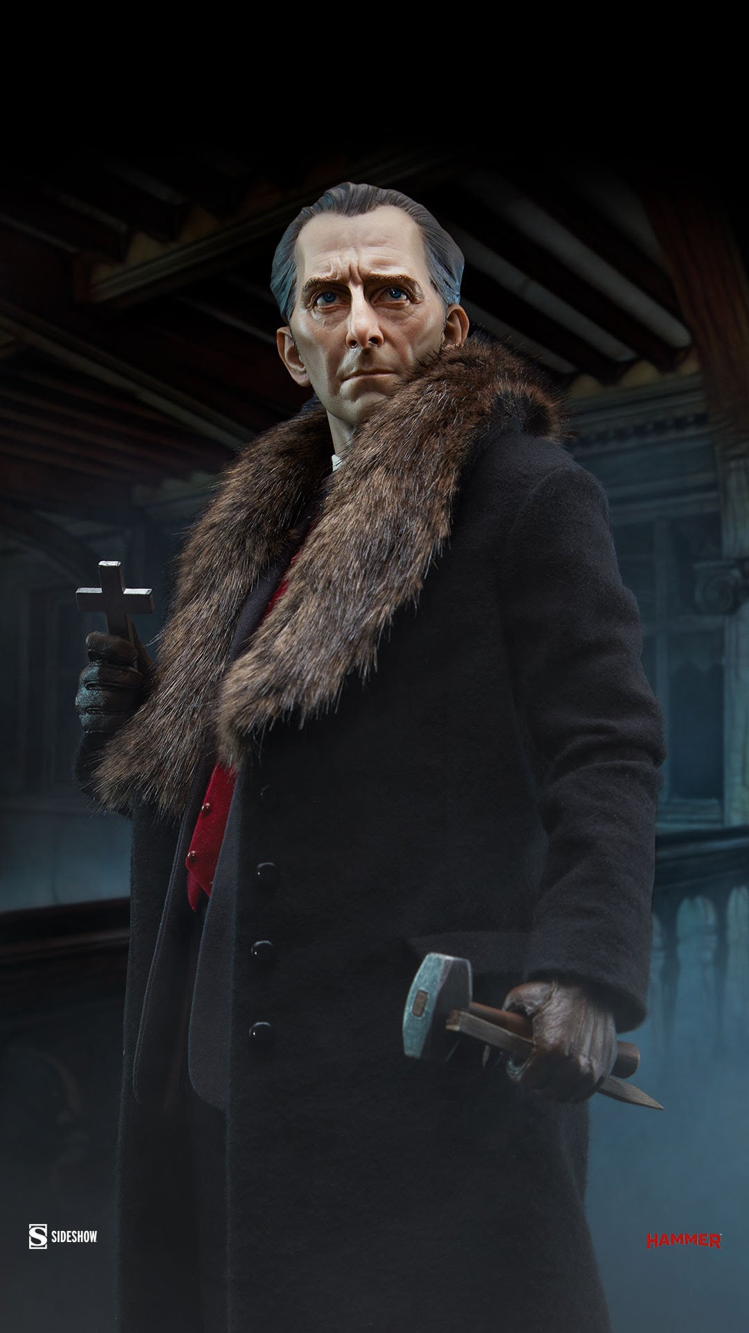 The Van Helsing Premium Format Figure measures 21.5” tall, and stands atop a gargoyle bedecked base. Sculpted with stunning likeness of actor Peter Cushing in one of his most iconic roles, this statue captures his character's determined and fearless expression as he summons his resolve and prepares to confront his nemesis, the fiendish Count Dracula.