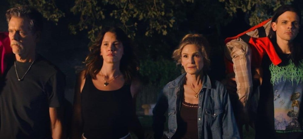 Kevin stars as underfunded horror filmmaker Jack Smith, whose legacy is as an indie maverick who makes all his movies with his once-nearly-famous actor wife, Ellen (Kyra Sedgwick), hopeful starlet daughter, Ula (Sosie Bacon), and muay thai metalhead son, Trent (Travis Bacon). Jack's latest title, Blood Moon, is close to wrapping production on his residential farmland. All that's left is a climactic sequence where Ula's sacrificed under a blood-red moon, or so Jack thinks. Instead, dead bodies start piling up around Blood Moon's production, and it's up to Jack to get his production back on track before there's no one left.