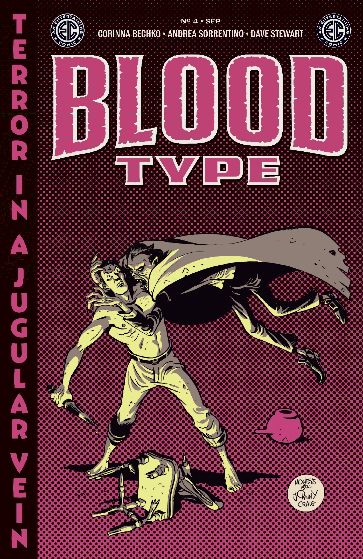 Following her first appearance in Epitaphs from the Abyss #3, the immortal vampire Ada has made this past summer a blood-splattered one to dismember in her own EC Comics series Blood Type from writer Corinna Bechko and artist Andrea Sorrentino, which comes to an eerie end today with Oni Press' anticipated release of the fourth frightful issue of the scary good standalone series that sinks its teeth into a seemingly idyllic tropical paradise.