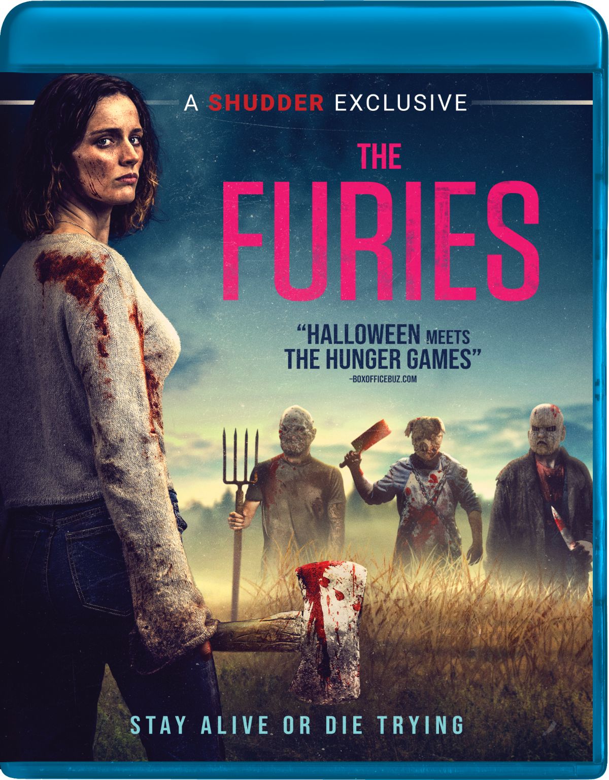 In THE FURIES, when Kayla (Airlie Dodds) wakes up in a coffin-like box in the middle of the woods, the first thing she sees is a terrifying masked man with an axe running straight for her. As she runs to try to get away, she realizes she is part of an insane and deadly game. There are six other women running scared in the woods, each with a masked assassin assigned to protect them and kill everyone else. Kayla races to save herself and as many women as she can, but when they start to turn on each other, her killer instinct is unleashed as she does whatever it takes to survive.