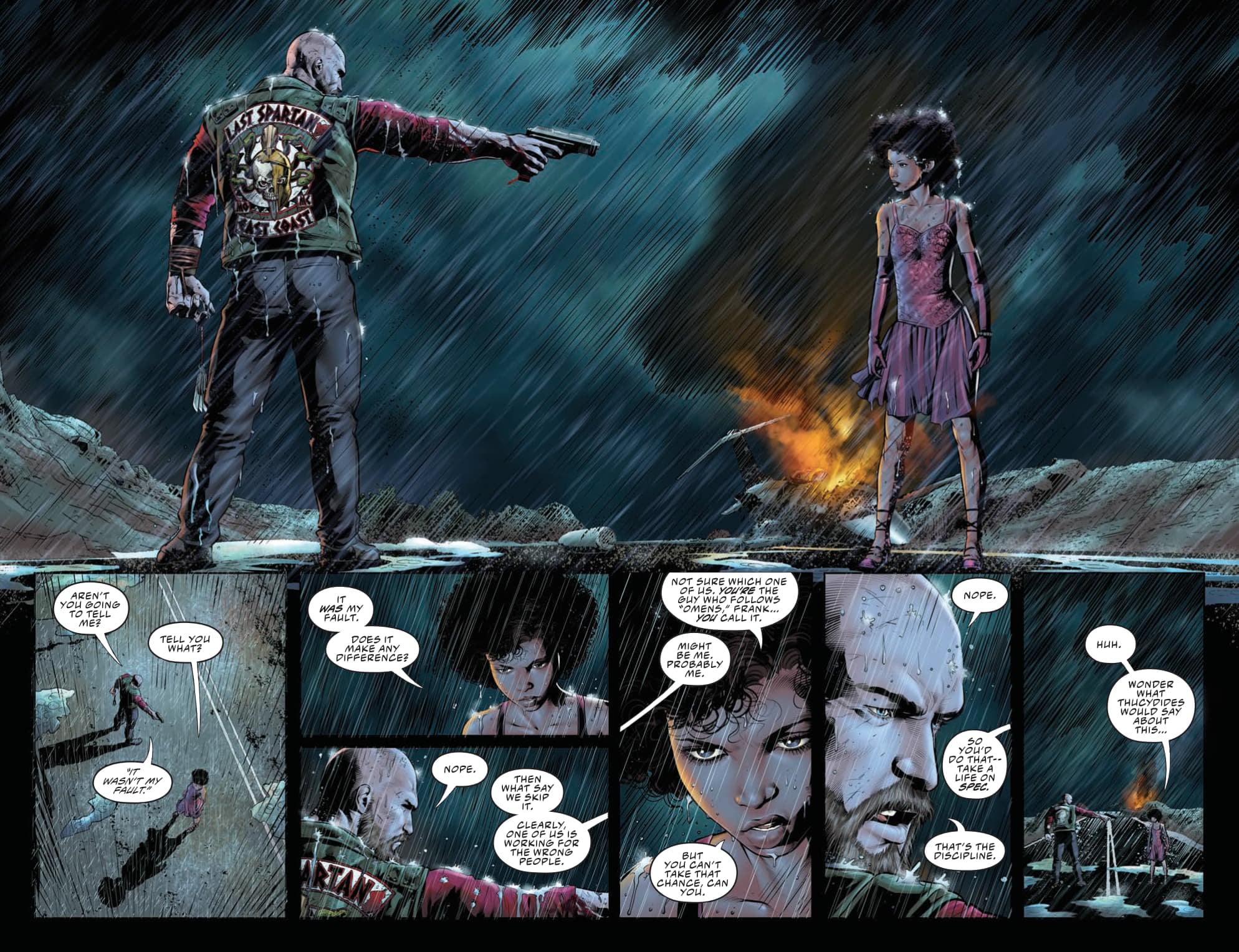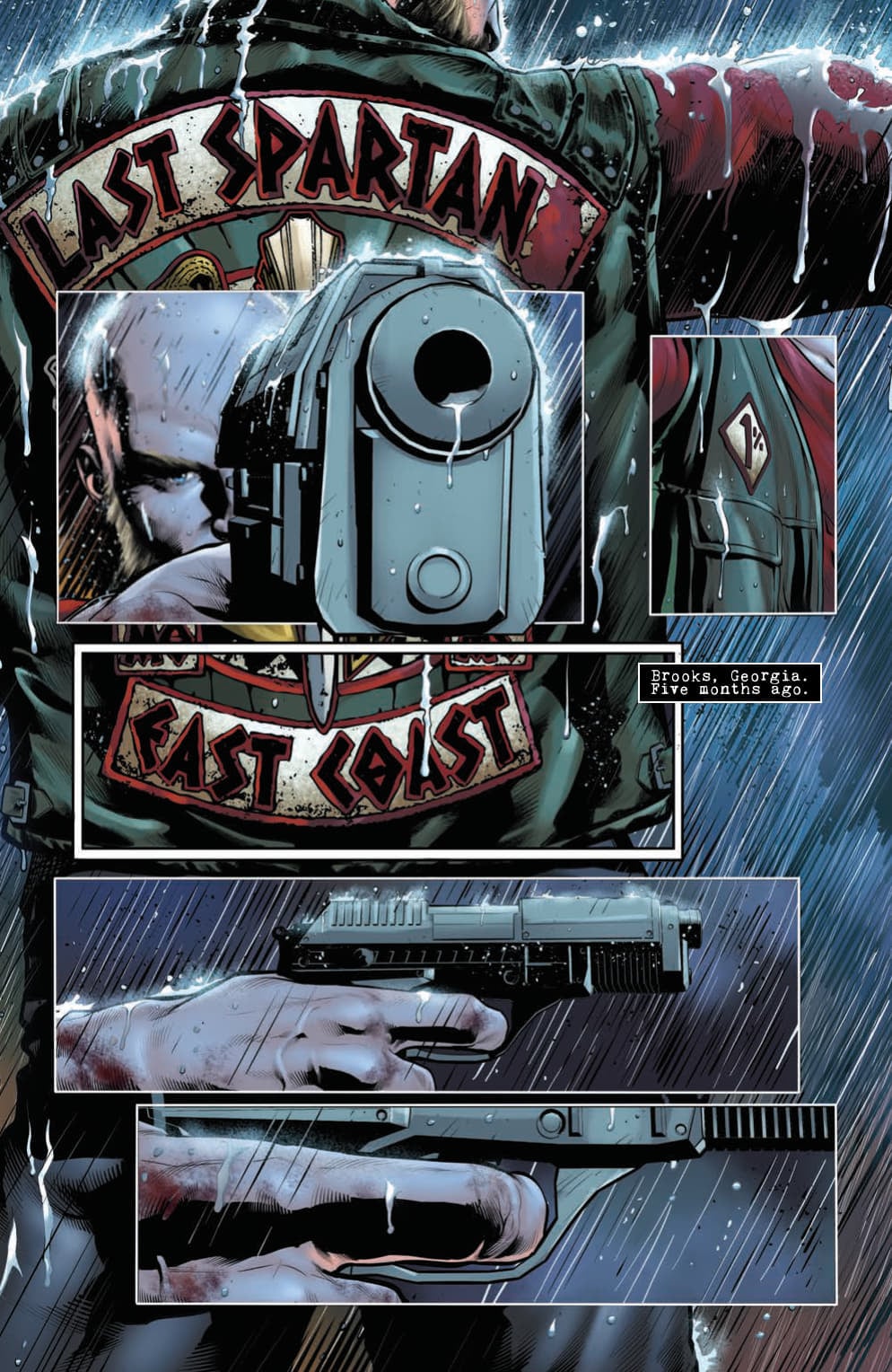 Tyler Mane: I moved to Atlanta in 2016 and heard announcements about human trafficking every time I was in the airport and became aware that Atlanta was a huge hub for it. This story is loosely based on a novel called THE LAST SPARTAN that a friend of mine, John F. Saunders wrote. Because the book was set in Atlanta and was the tale of Frank Kane being called back for one last mission to rescue a girl from traffickers, I wanted to expand on that and build out the extent of the operation to reflect what I was hearing about in the real world. We also added the character of Amanda Harper, his unlikely partner, to be able to say what Frank doesn’t. The novel is told from Frank’s perspective and inner thoughts. In a comic, you can use narration captions, but with a largely silent character like Frank, that gets to be a lot. We learn about Frank and his motivations through his dialogue with Amanda.