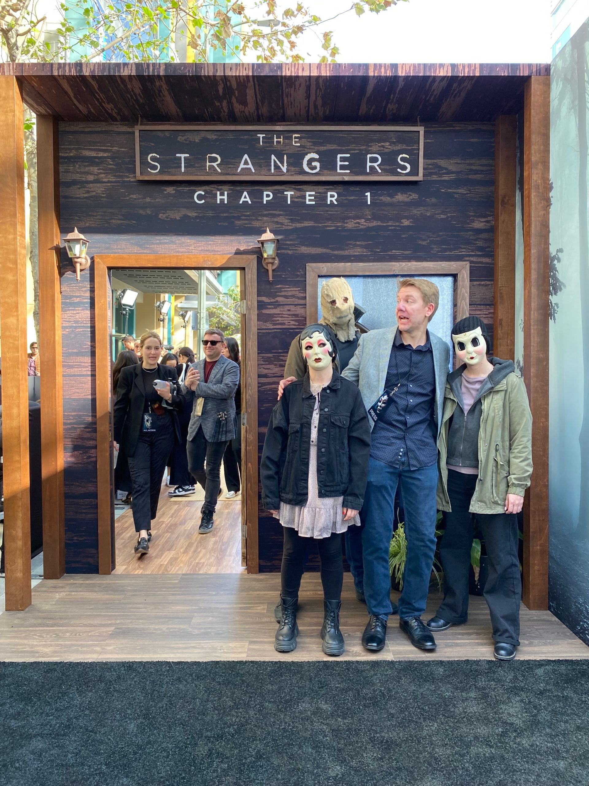 Below, you can check out the highlights and photos from the red carpet that featured an impressive replication of the cabin from the movie as well as a few familiar masked faces that were observing the proceedings... And in case you missed it, go here to catch up on all of our coverage of The Strangers – Chapter 1!