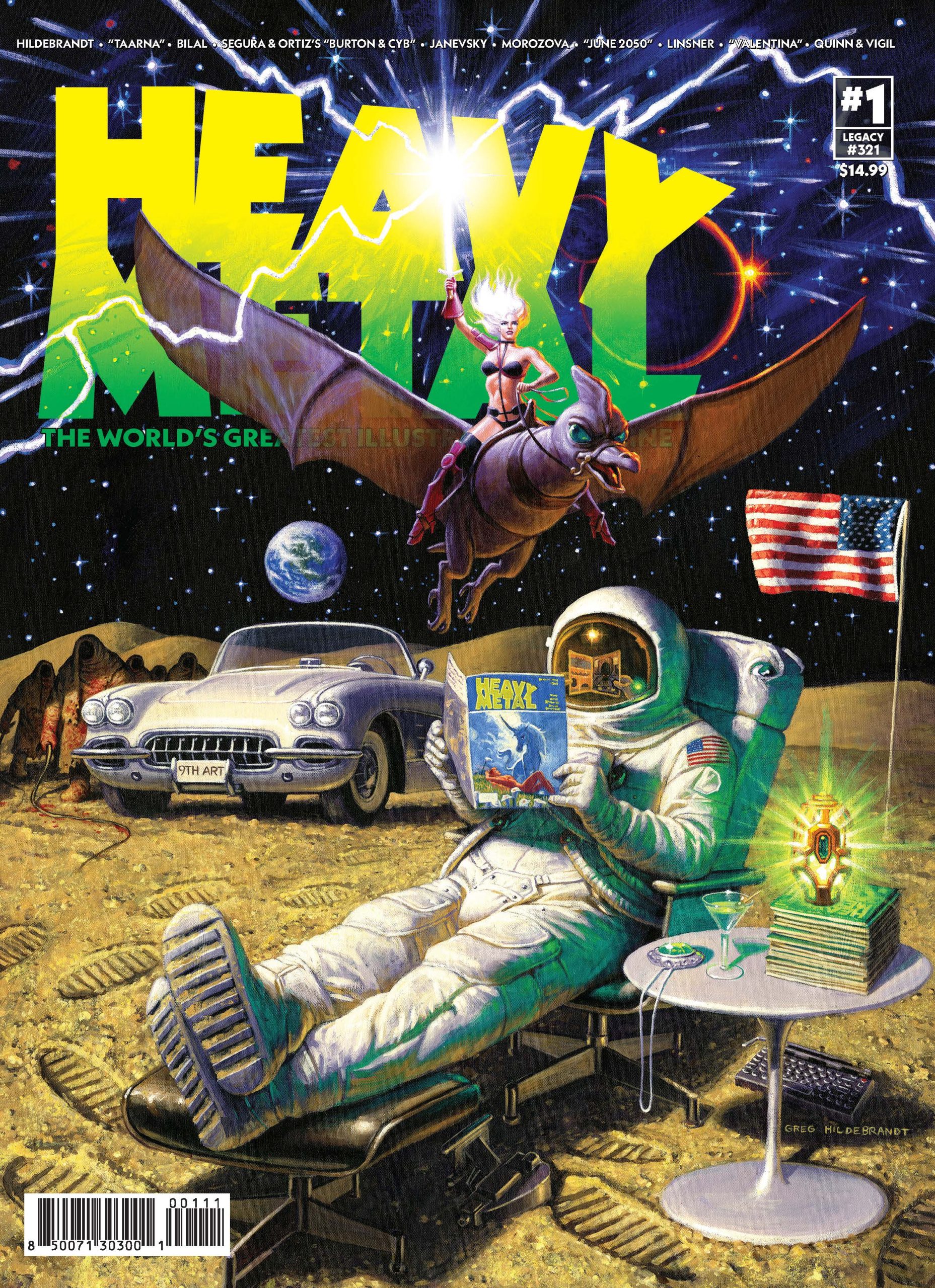 From the Press Release: After its enormously successful Kickstarter campaign last year, Heavy Metal Magazine has officially relaunched with its brand new Issue #1 (Legacy #321) out now. Featuring a monumental 232 pages of mind-bending visuals and boundary-pushing content from both returning legends and breakout creators from around the globe, the debut issue marks a bold return to the magazine’s roots as the definitive illustrated anthology. Heavy Metal #1 is available for purchase today (via Diamond) and May 7 (via Lunar) in local comic shops, with the sci-fi, fantasy, and horror magazine hitting newsstands in the US, Canada, the UK, Australia, and many other countries worldwide starting May 13.