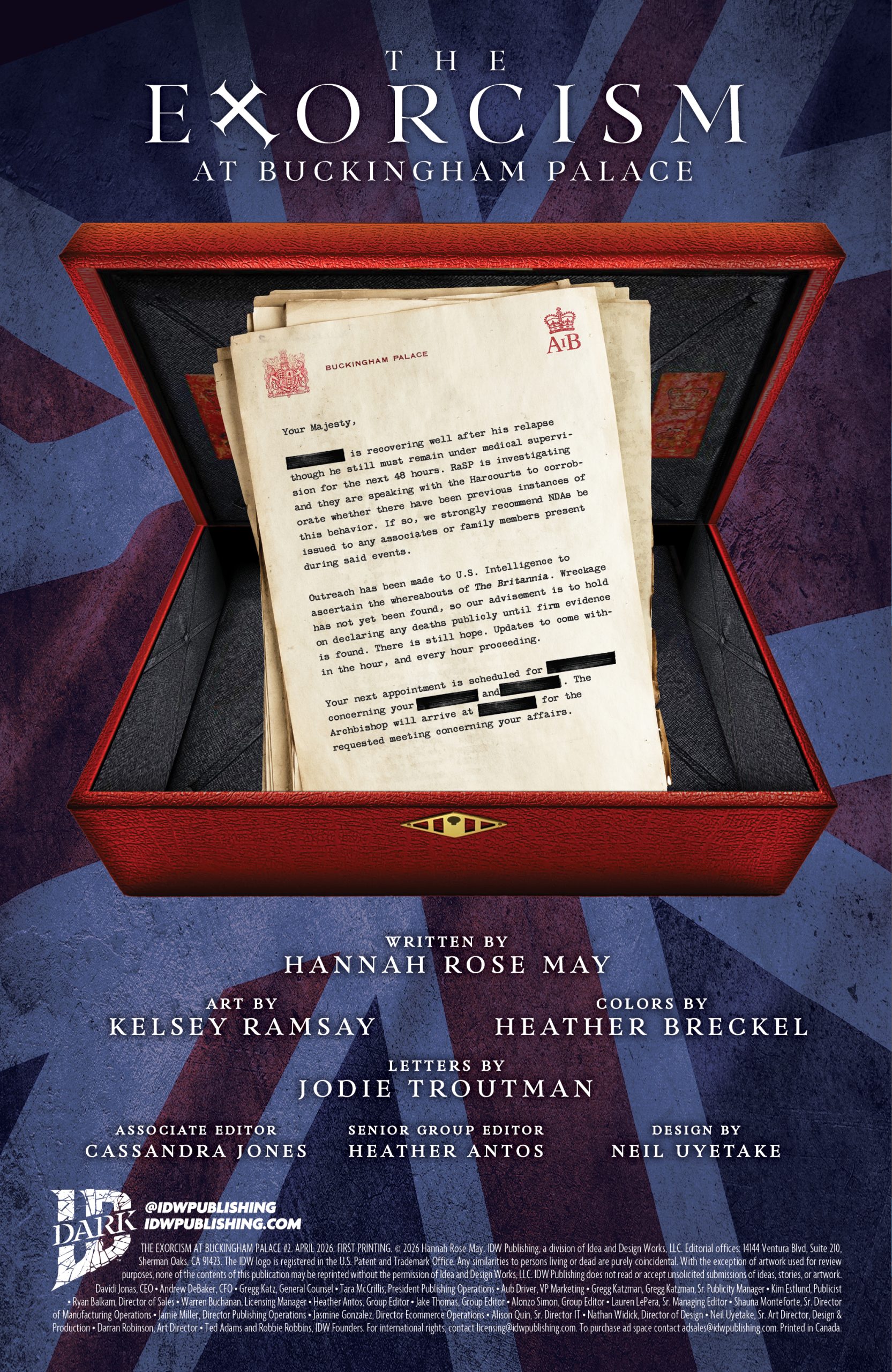 After exploring the haunted corridors of the White House in The Exorcism at 1600 Penn, series creator and writer Hannah Rose May has teamed up with artist Kelsey Ramsay to bring supernatural scares across the pond in the new IDW Dark comic book series The Exorcism at Buckingham Palace. With the first issue of the new series now out everywhere, courtesy of IDW, we're giving Daily Dead readers an exclusive preview of the second issue that you can read right now!