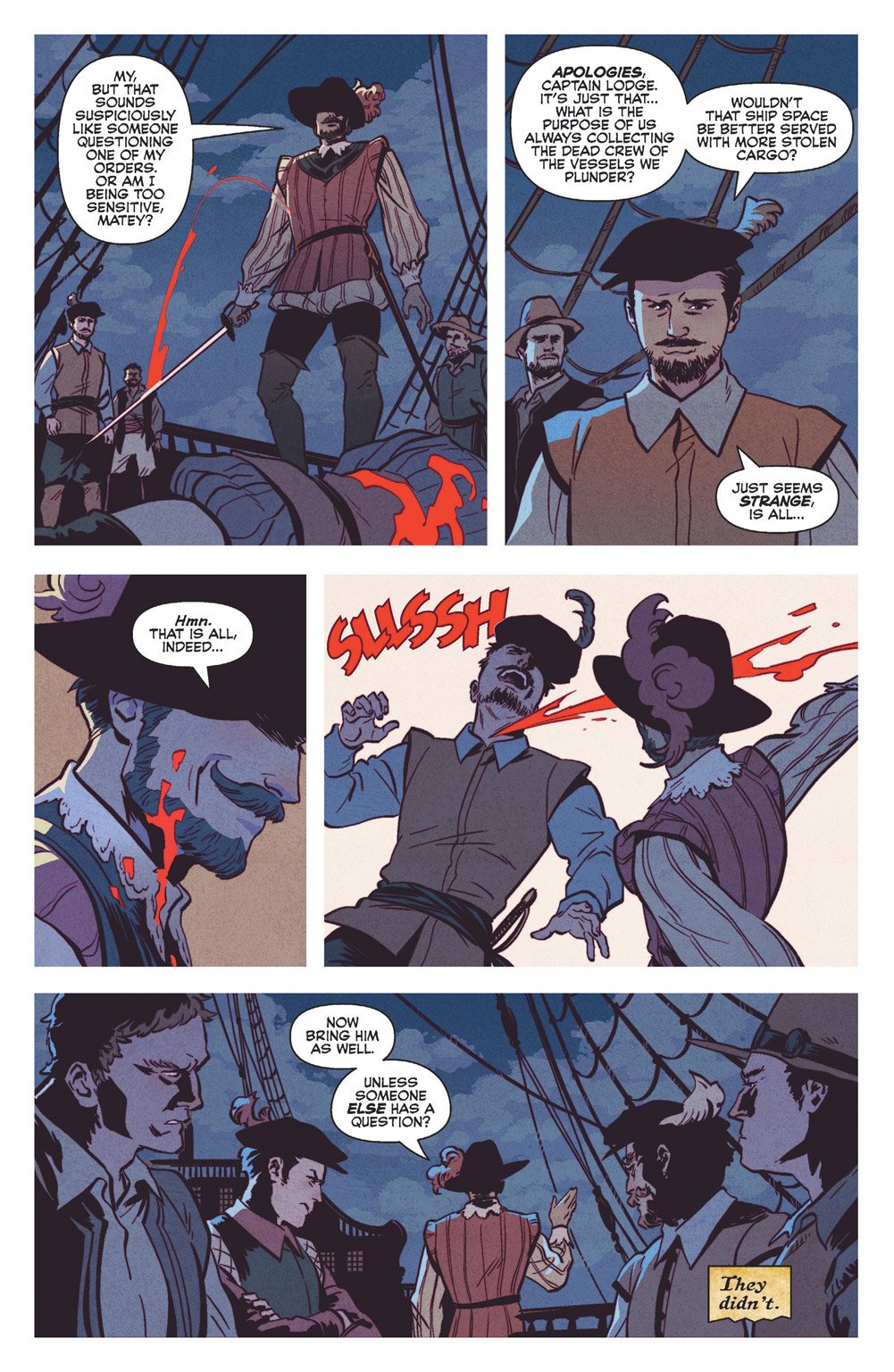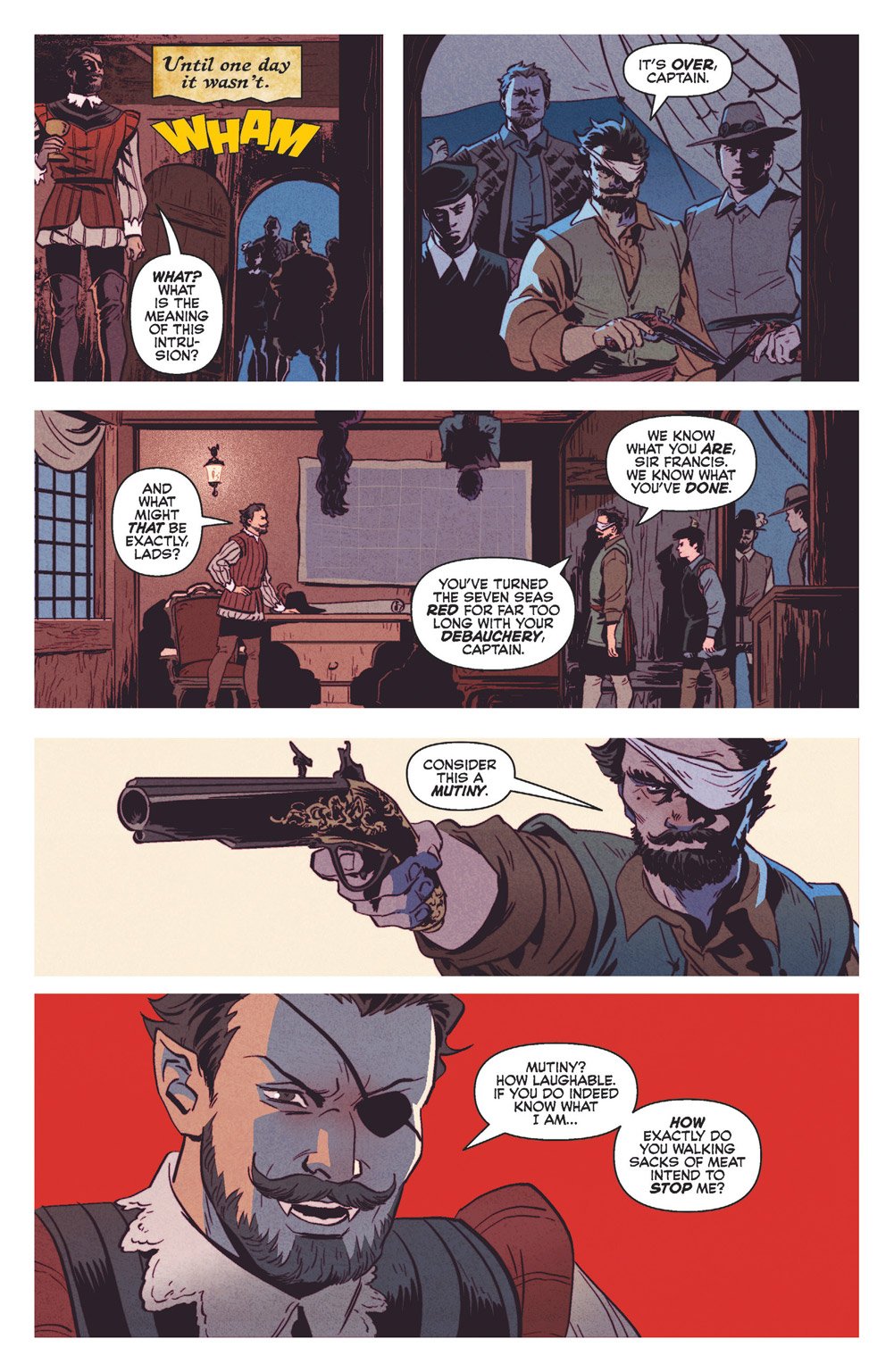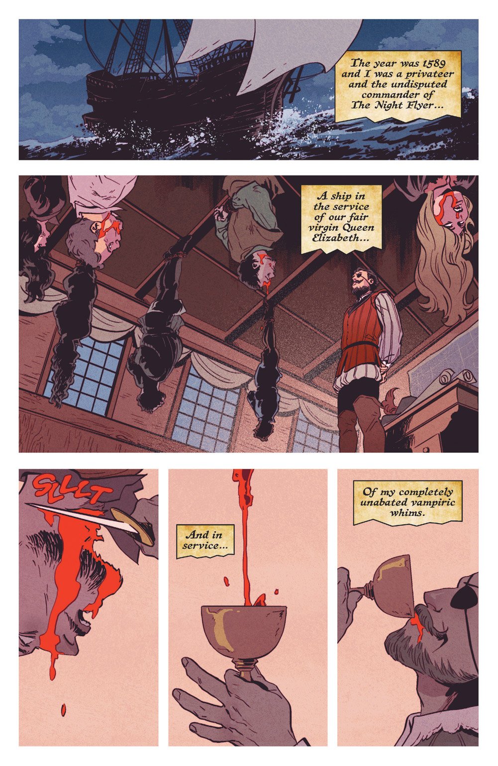In our exclusive preview pages below, you can watch Veronica's ancestor Sir Francis Lodge spill (and drink) blood on the high seas aboard his ship (aptly named The Night Flyer) in the 16th century.