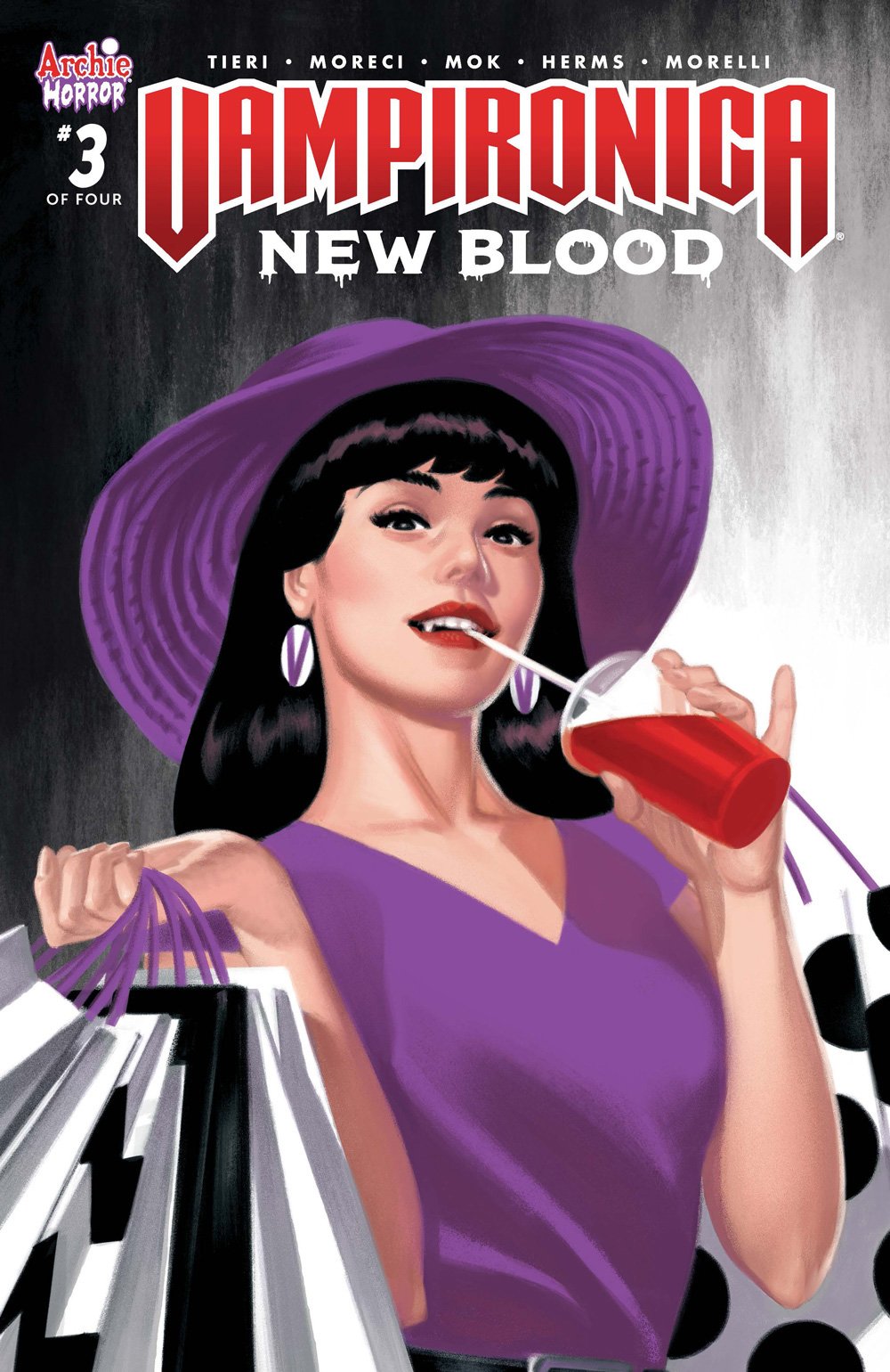 In addition to our exclusive preview pages, we also have a look at the stylish cover art for Vampironica: New Blood #3, including the main cover by Audrey Mok and variant covers by Adam Gorham and Greg Smallwood.