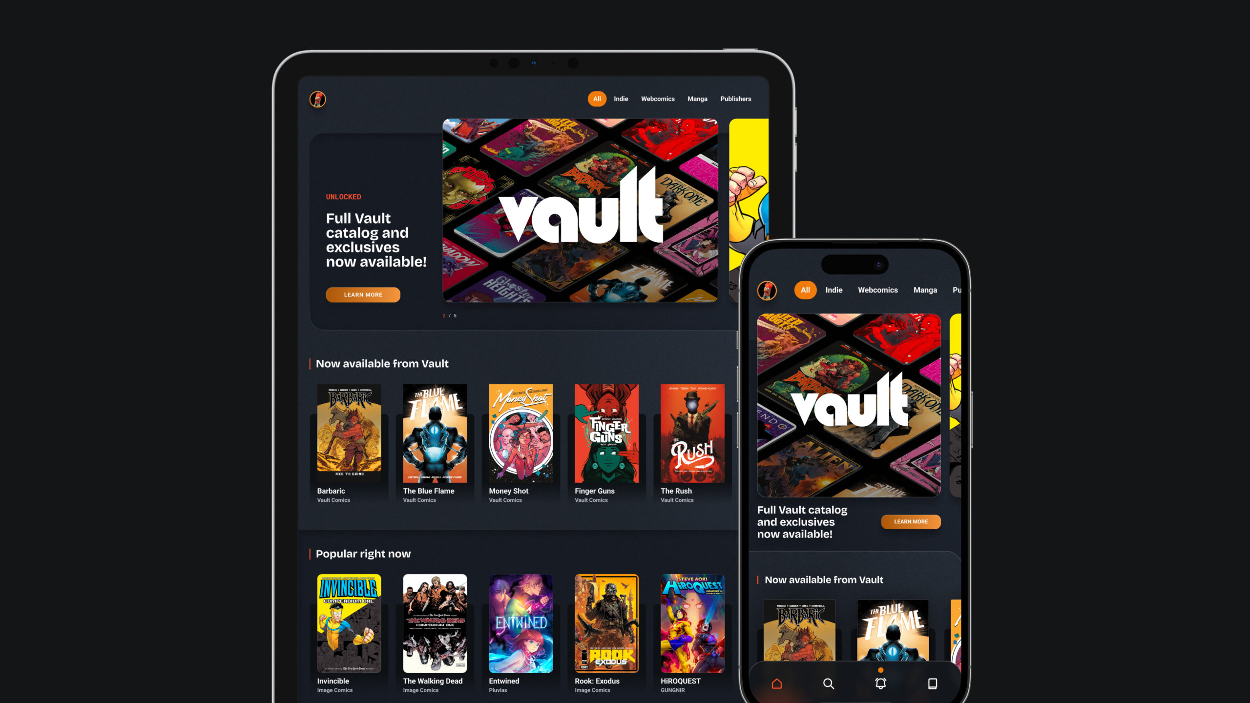Vault Comics is an acclaimed publisher of bold science fiction, fantasy, and horror comics known for its hit titles including BarbaricMoney Shot, and Heathen. Vault joins the robust roster of independent publishers available on GlobalComix, including Image Comics, BOOM! Studios, Oni Press, AWA Studios, Mad Cave Studios, and others.