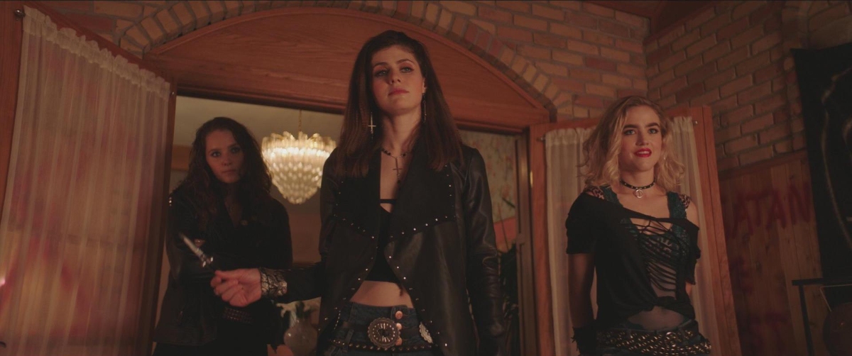Synopsis: "On the way to a heavy metal concert, Alexis (Alexandra Daddario) and two girlfriends hear a news report of a local murder believed to be tied to a series of satanic killings. After the show, the girls invite three guys to join them at the estate owned by Alexis’s father, a fire-and-brimstone preacher (Johnny Knoxville). What starts as a party suddenly turns dark and deadly in this devilishly entertaining thriller."