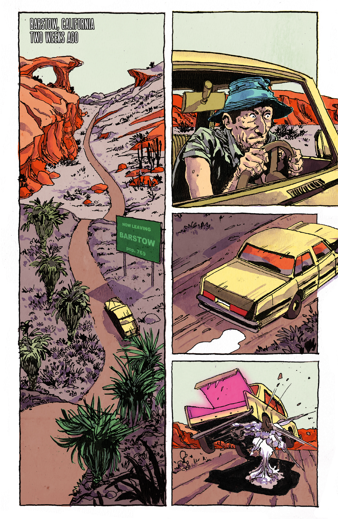 “We first had the idea for Barstow while traveling very late on Sunday evening from Las Vegas to Los Angeles. We fell in love with the wild stretch of road between the two cities, especially the area surrounding the Mojave Desert and all the towns in between. Though we used the name Barstow, our town in the series is an amalgam of all the quirky desert ‘burgs we have encountered in that area.”